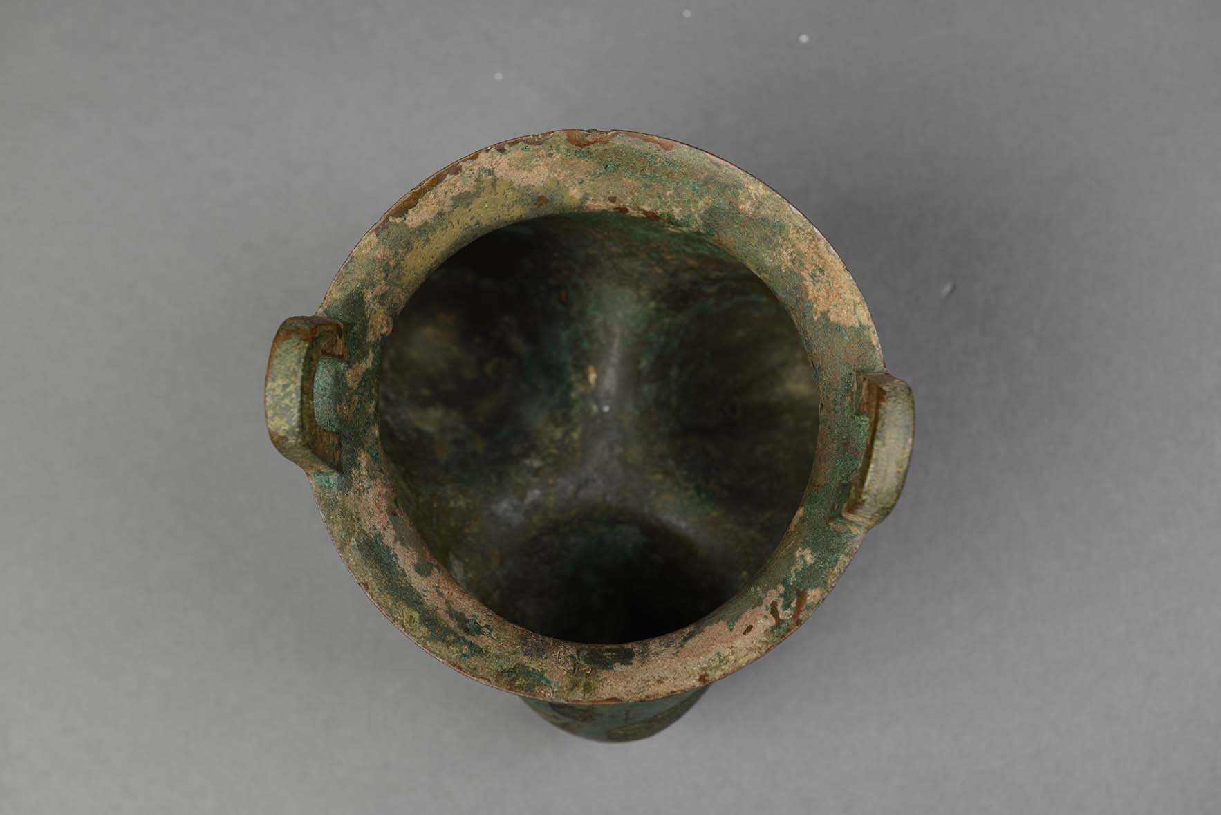 内容:侈口,尖唇,环形双立耳,束颈,三袋足分裆,颈下饰一周三组饕餮纹,腹内壁有铭文。