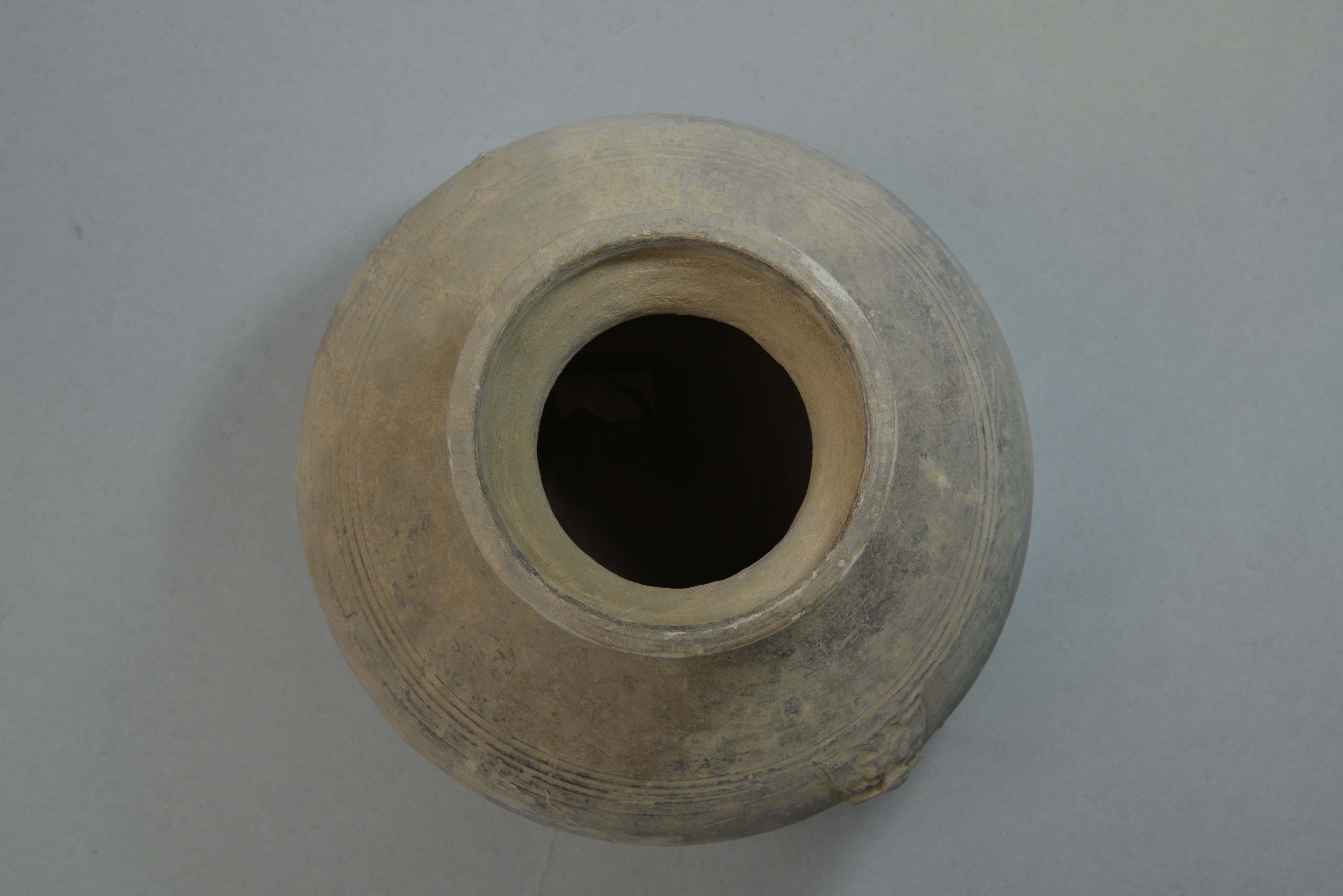 汉弦纹灰陶壶