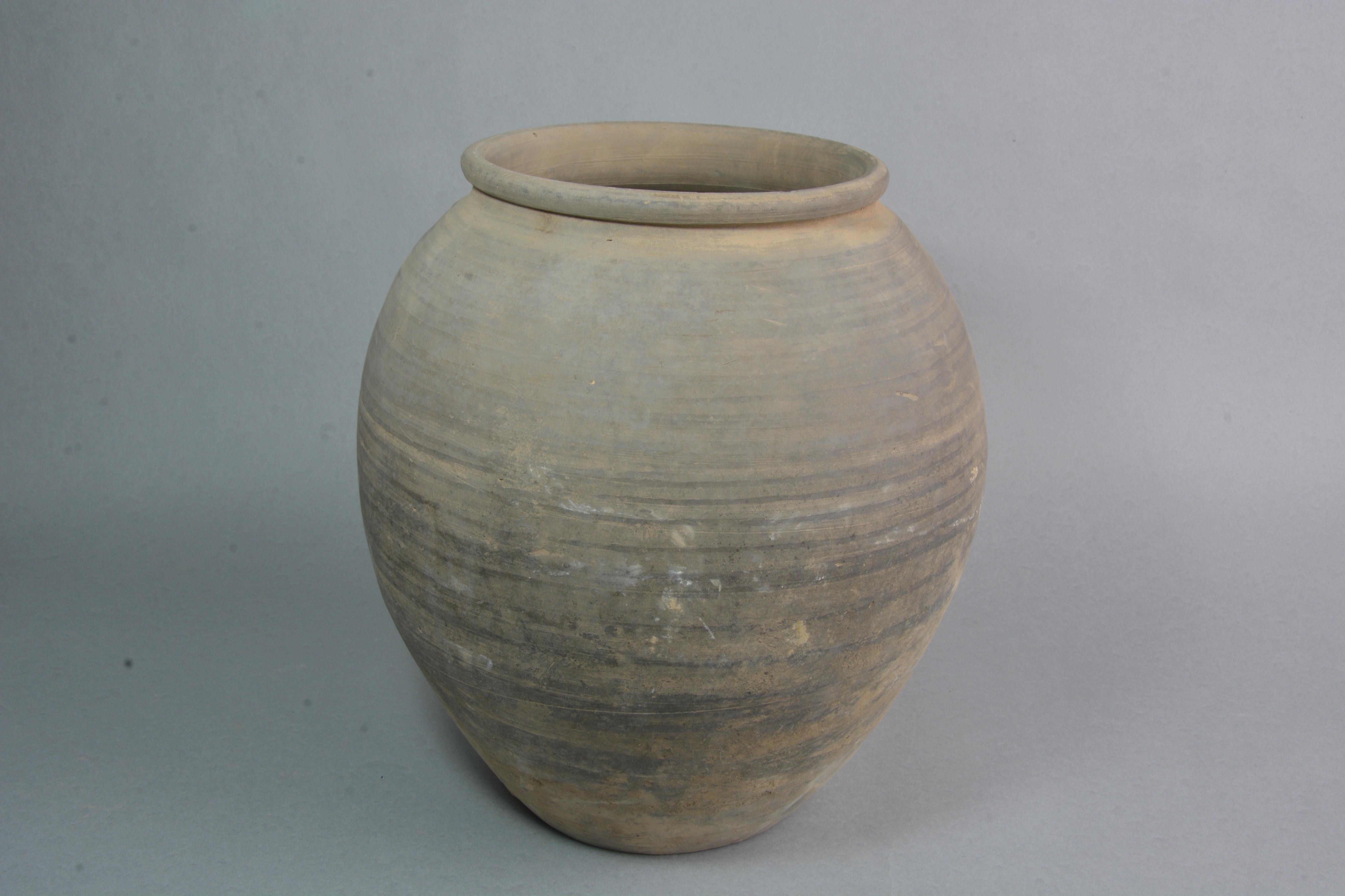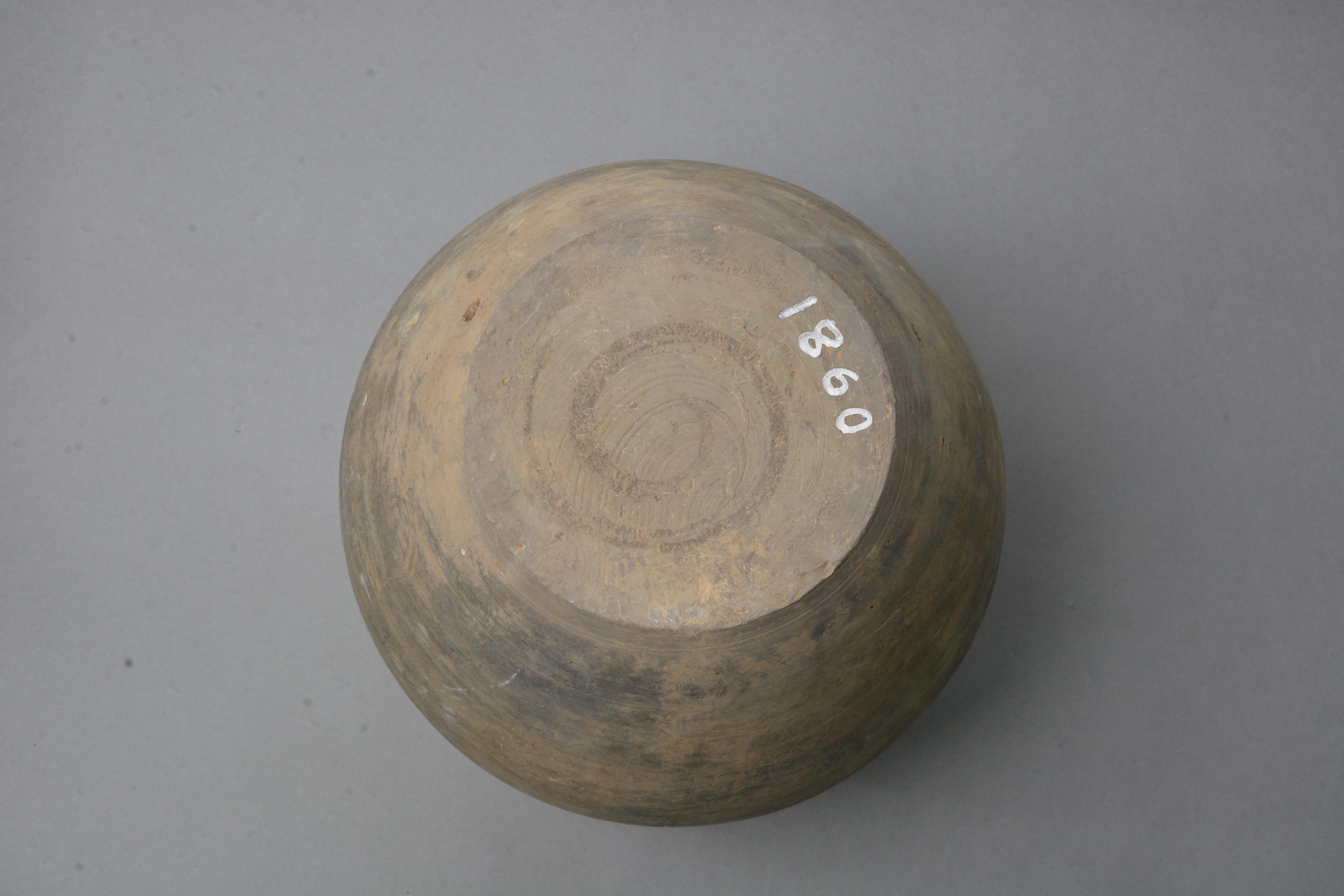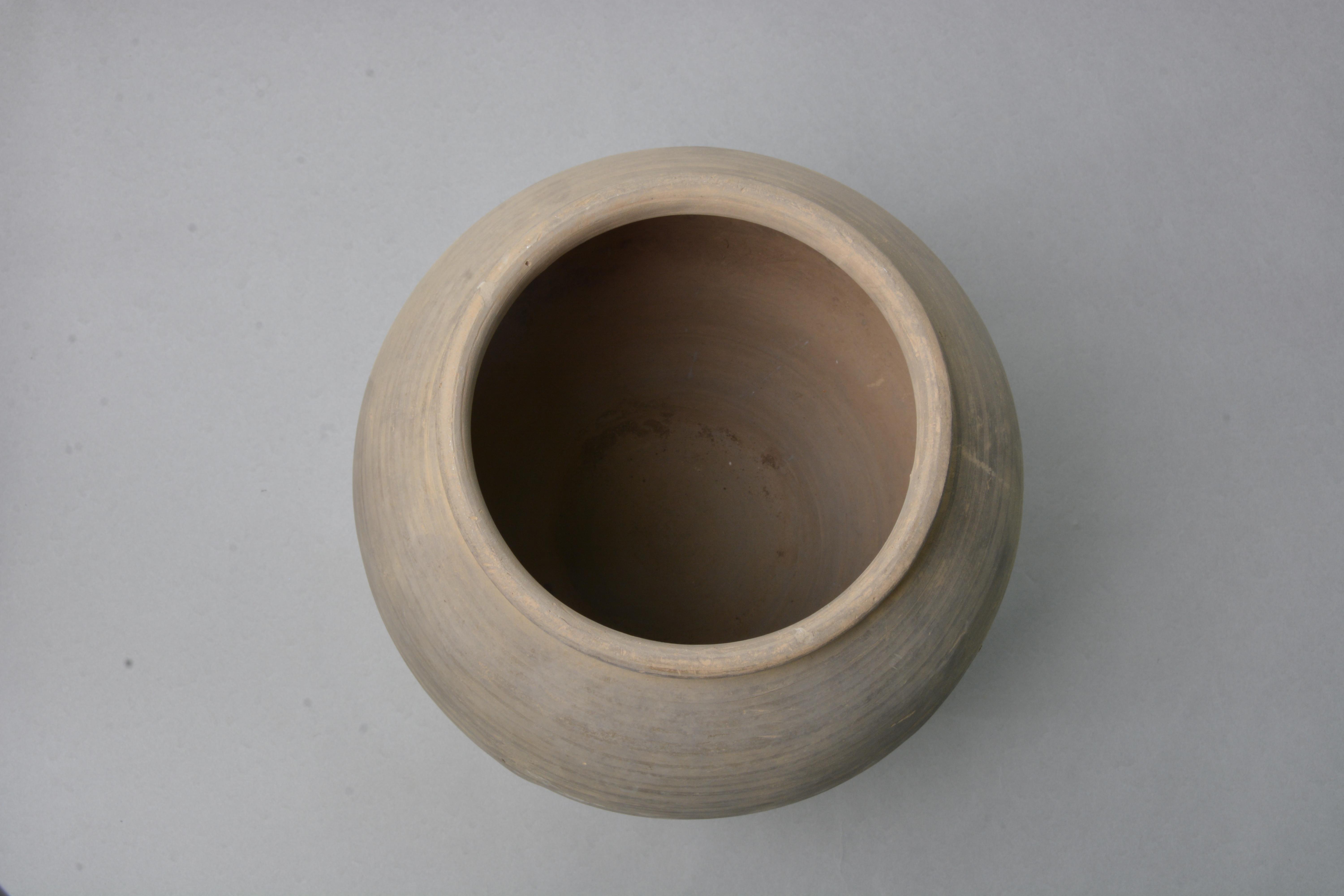 泥质灰陶。侈口,圆唇,短颈,深腹,平底。器表有轮制痕迹。