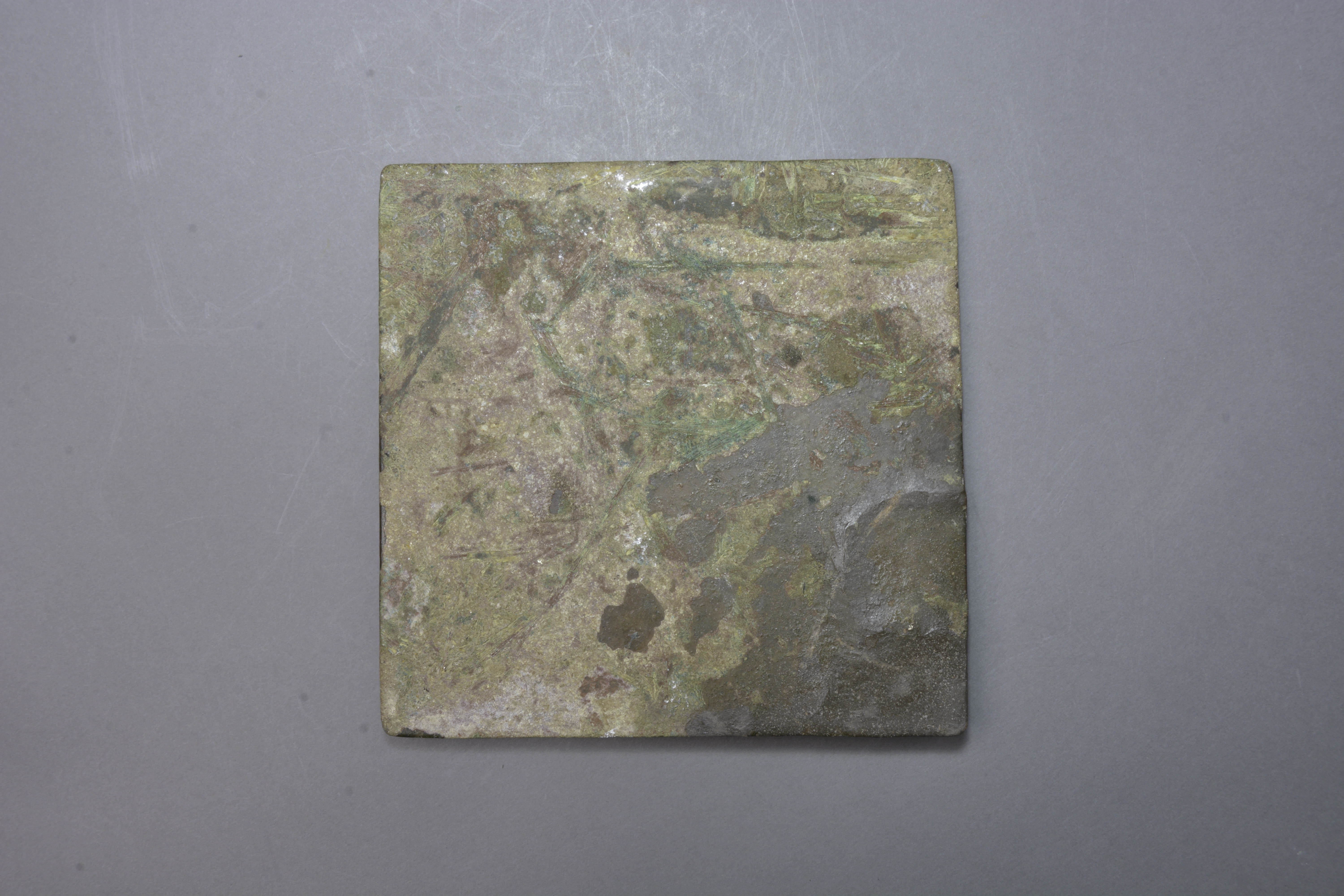 方形,小圆钮。两凸弦纹方框将镜背分作三区。内区四灵绕钮分列四方,其外环饰八卦纹;中区作十二生肖带;外区为契丹纹带。窄素缘上印刻“平凉府官”及鱼押,乃金代验记。