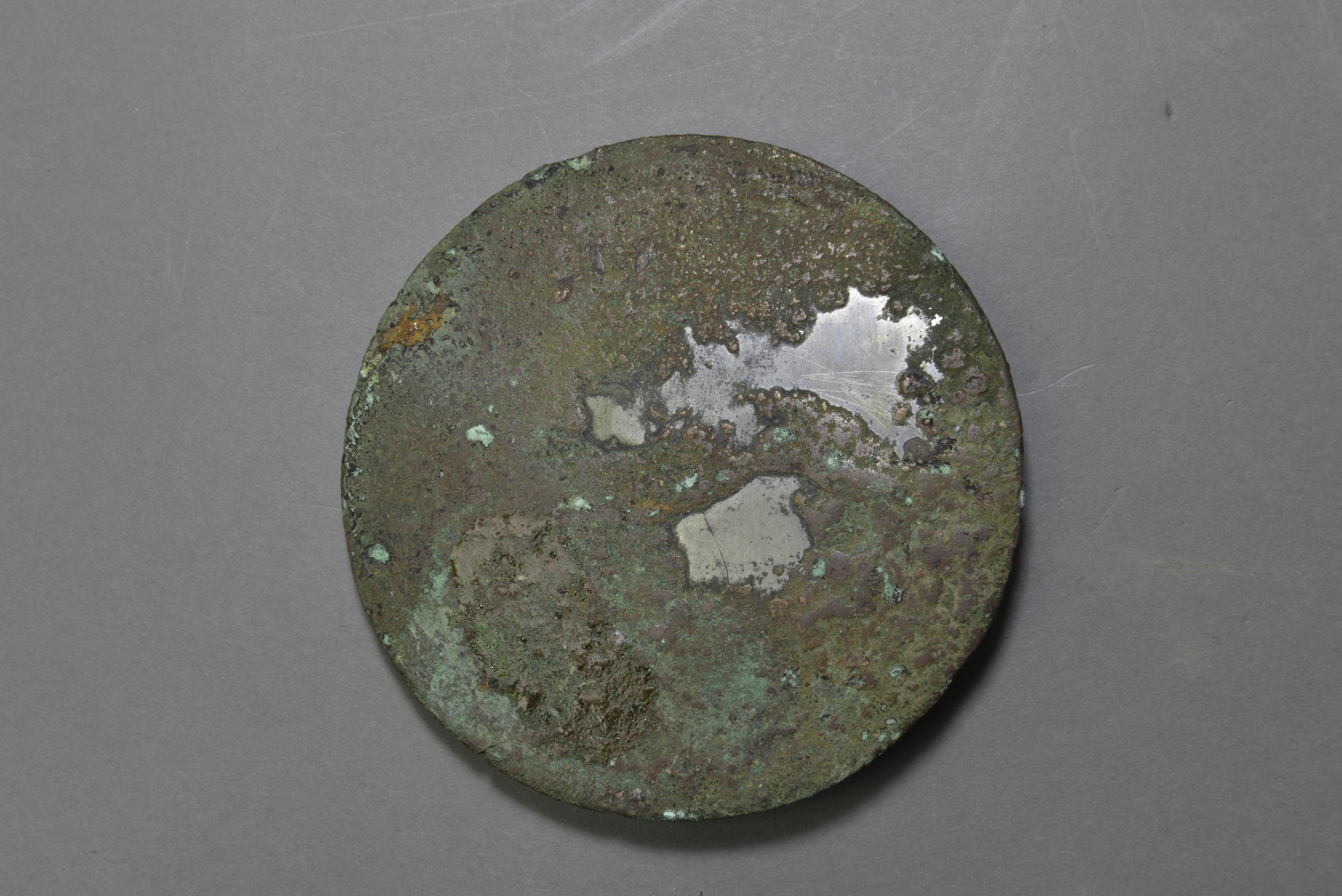 圆形,圆钮,圆钮座。座外四乳间以四禽,小禽方向两两隔乳相对或相背。其外依次为斜 线纹、锯齿纹。窄素缘。