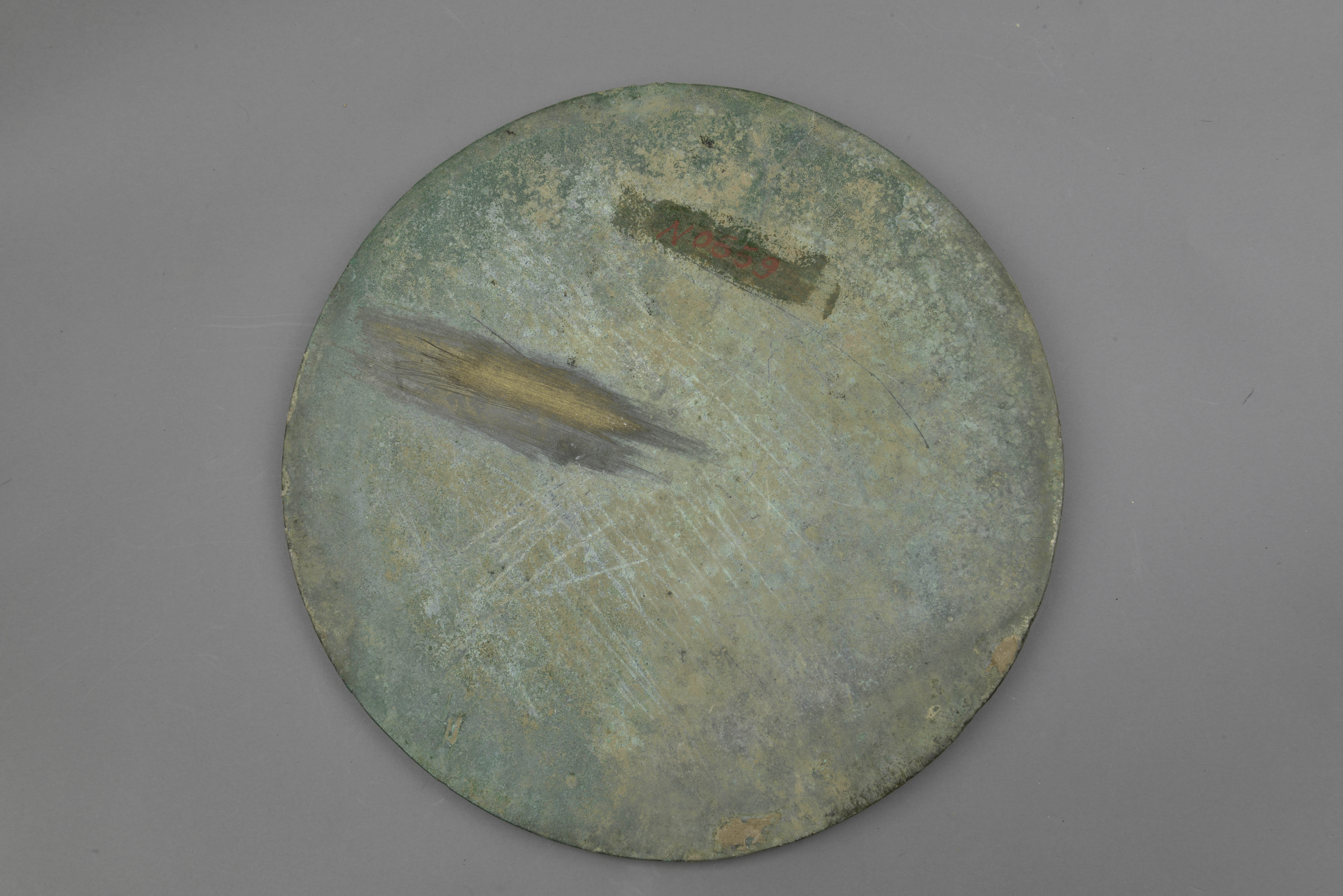 圆形,圆钮。钮上下左右各有一铭文,合为“寿山福海”四字,字体规整,外饰一周凸弦纹。素缘。