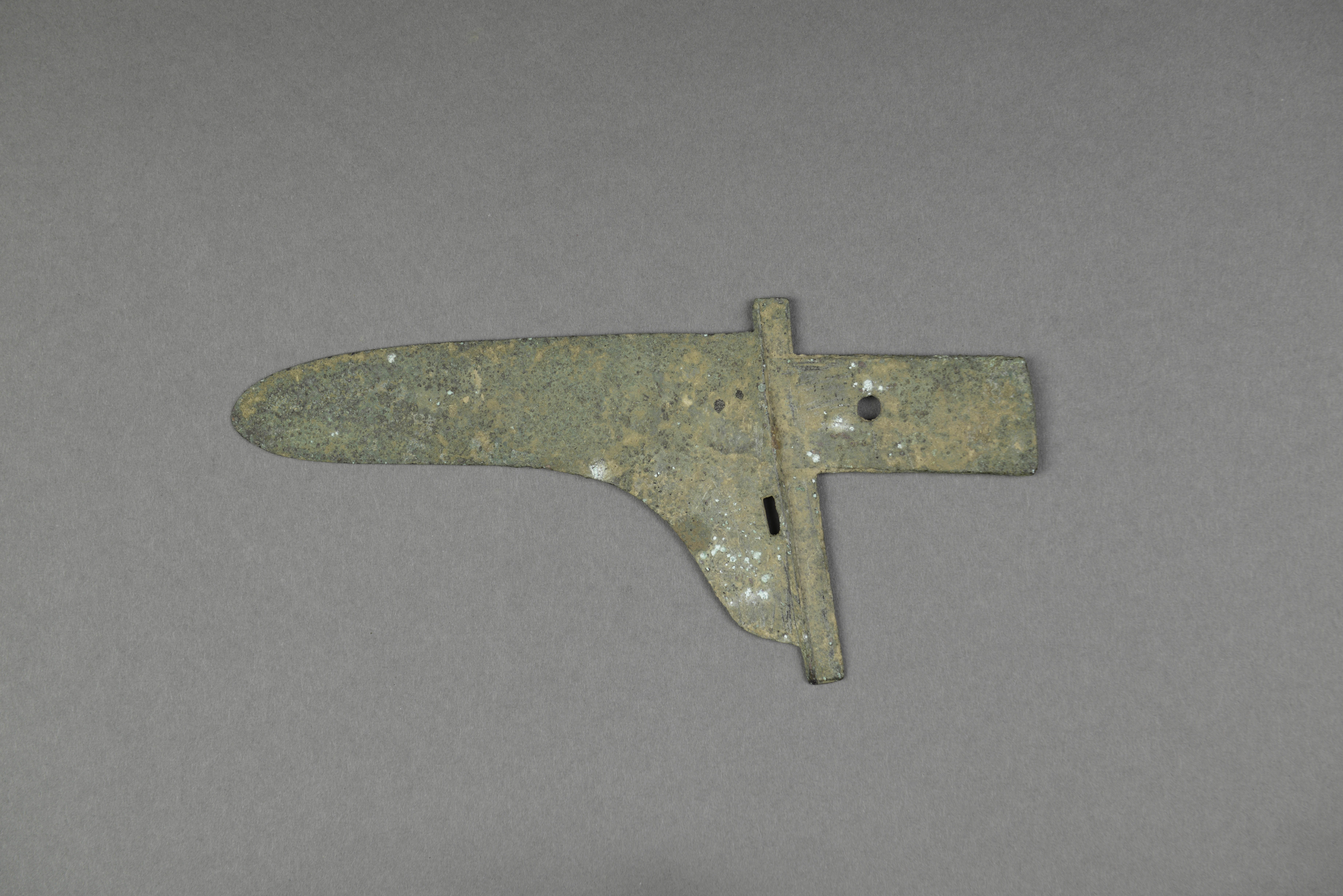 长援,援尖稍下弯。中胡,阑侧一穿,长方形内。内上有一圆形穿。素面。