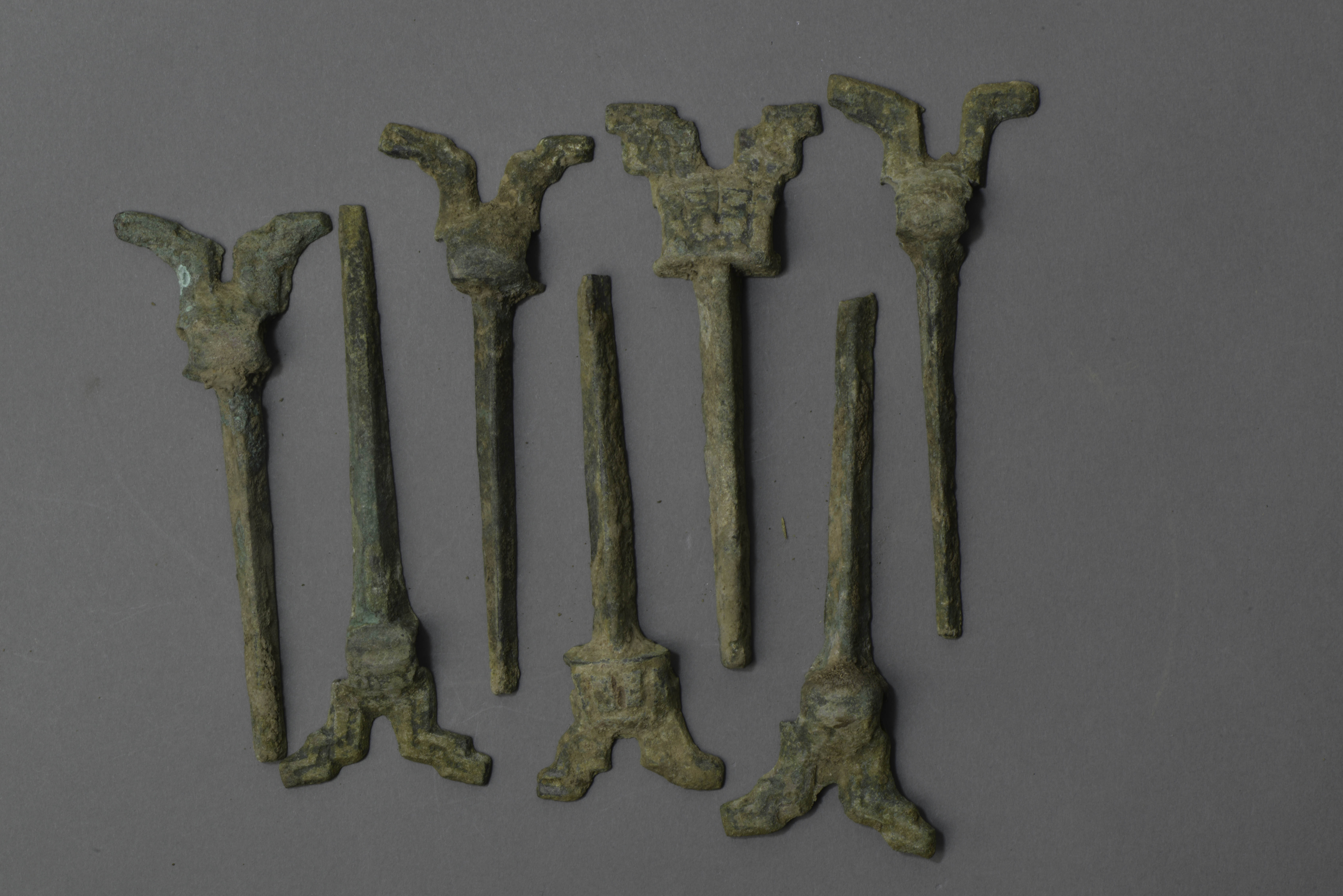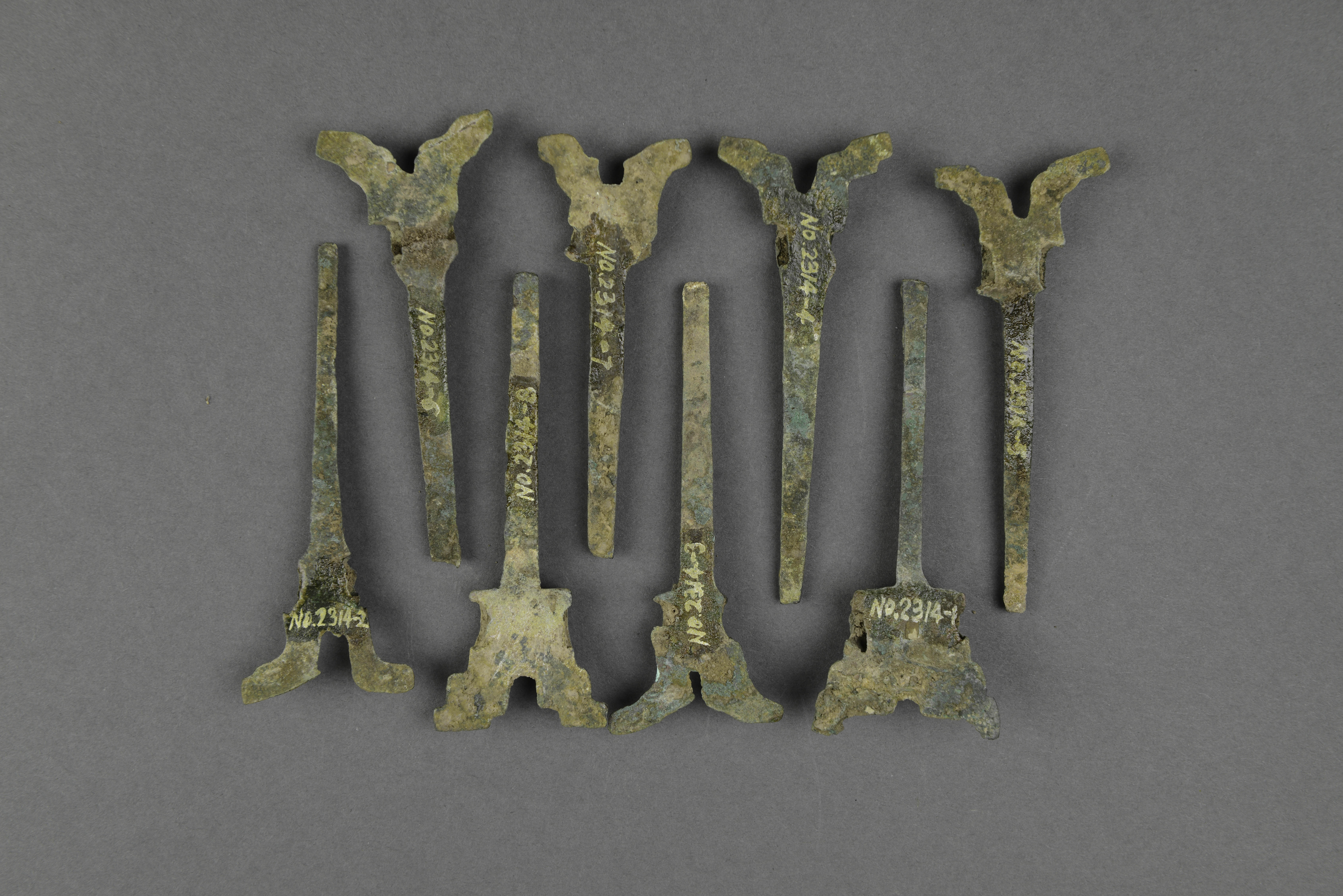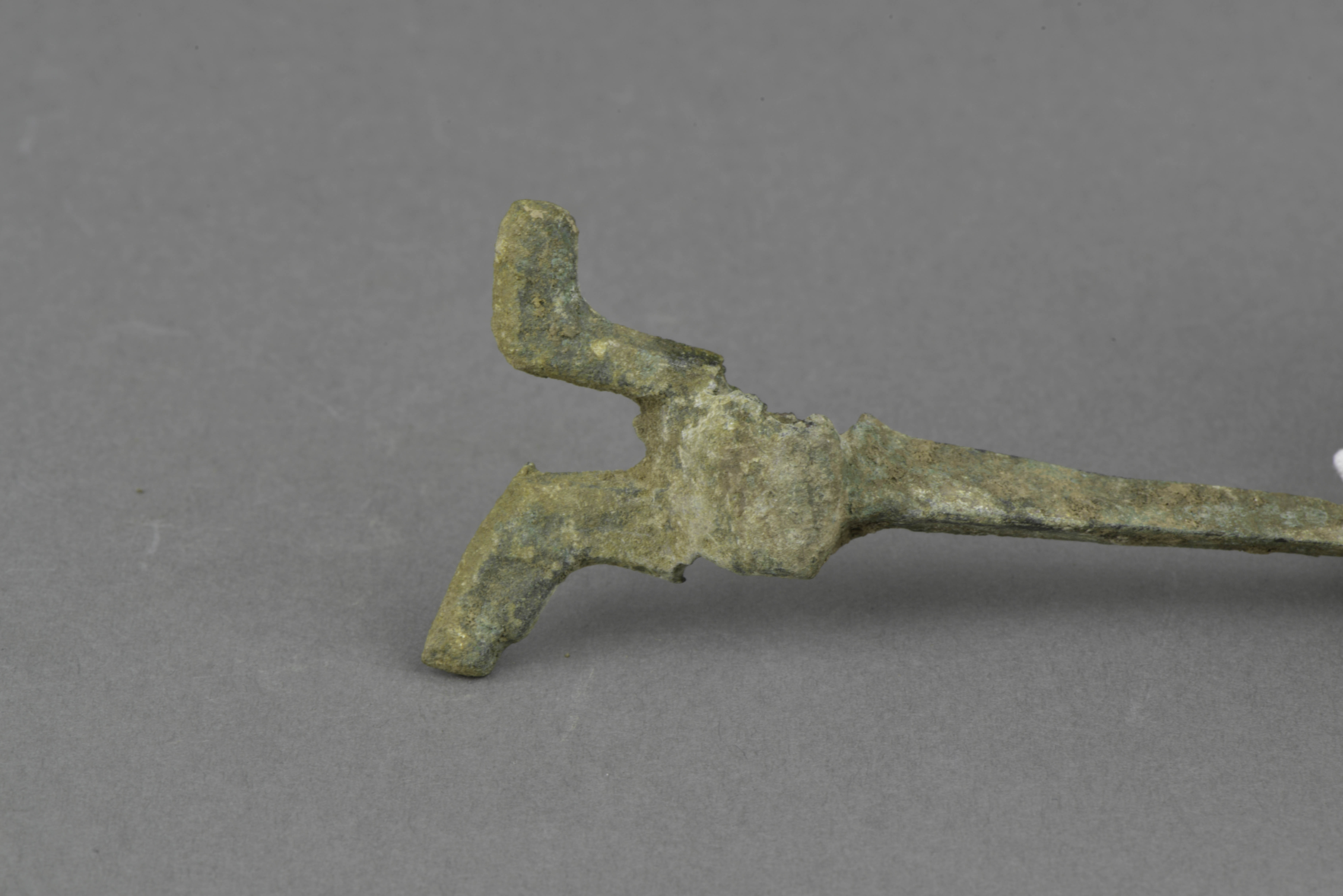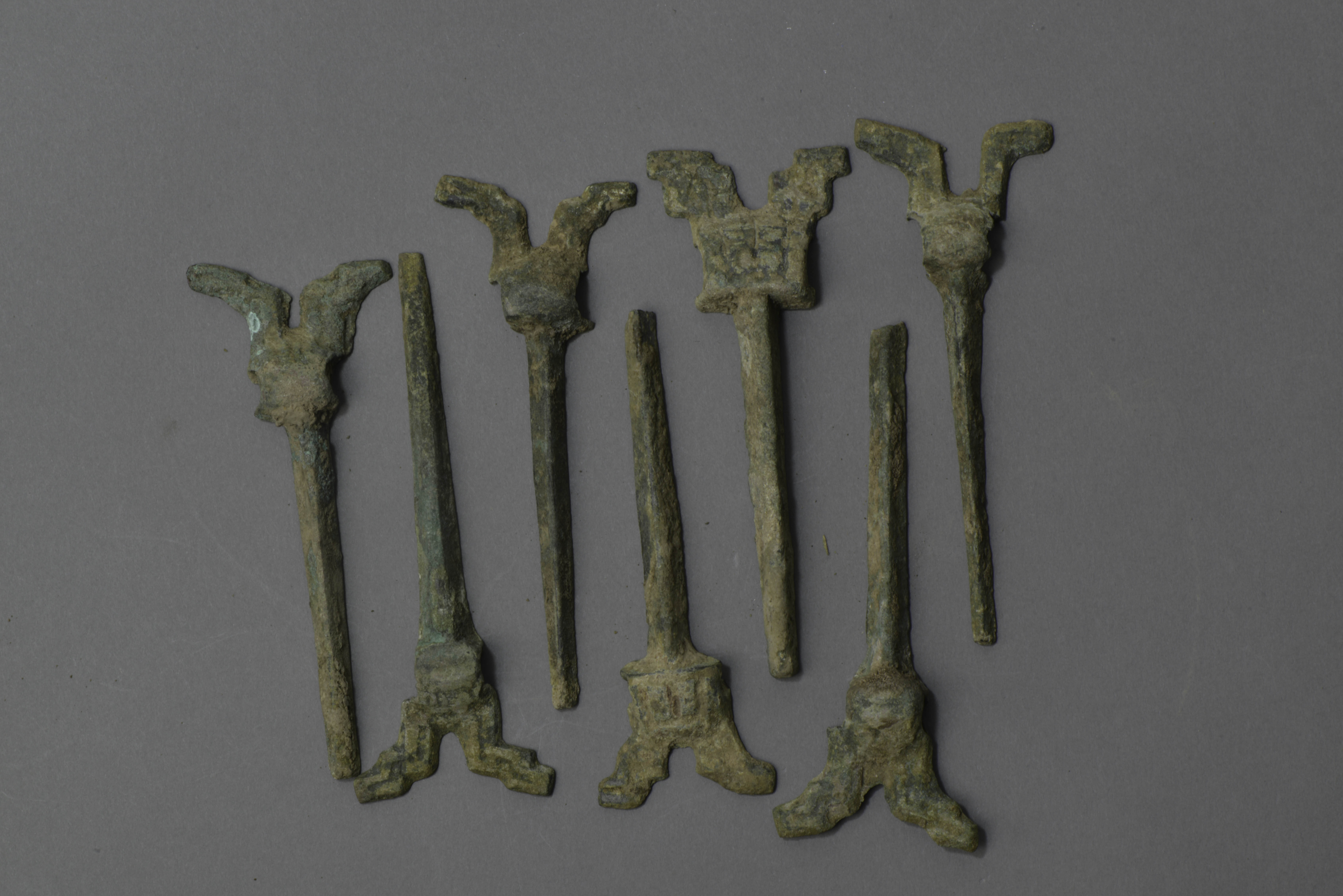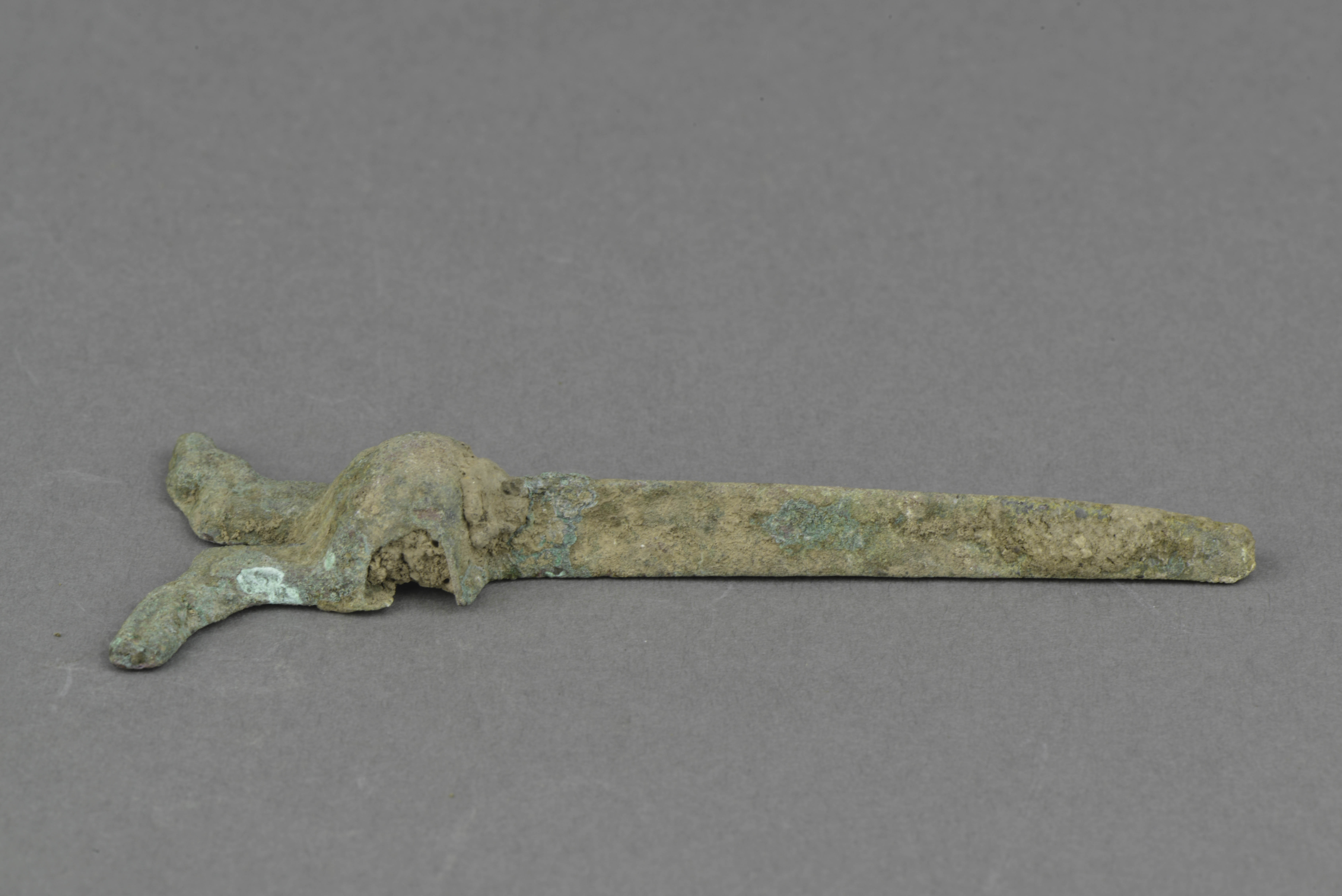 兽面形辖首,兽耳下有圆穿,长条形辖身。