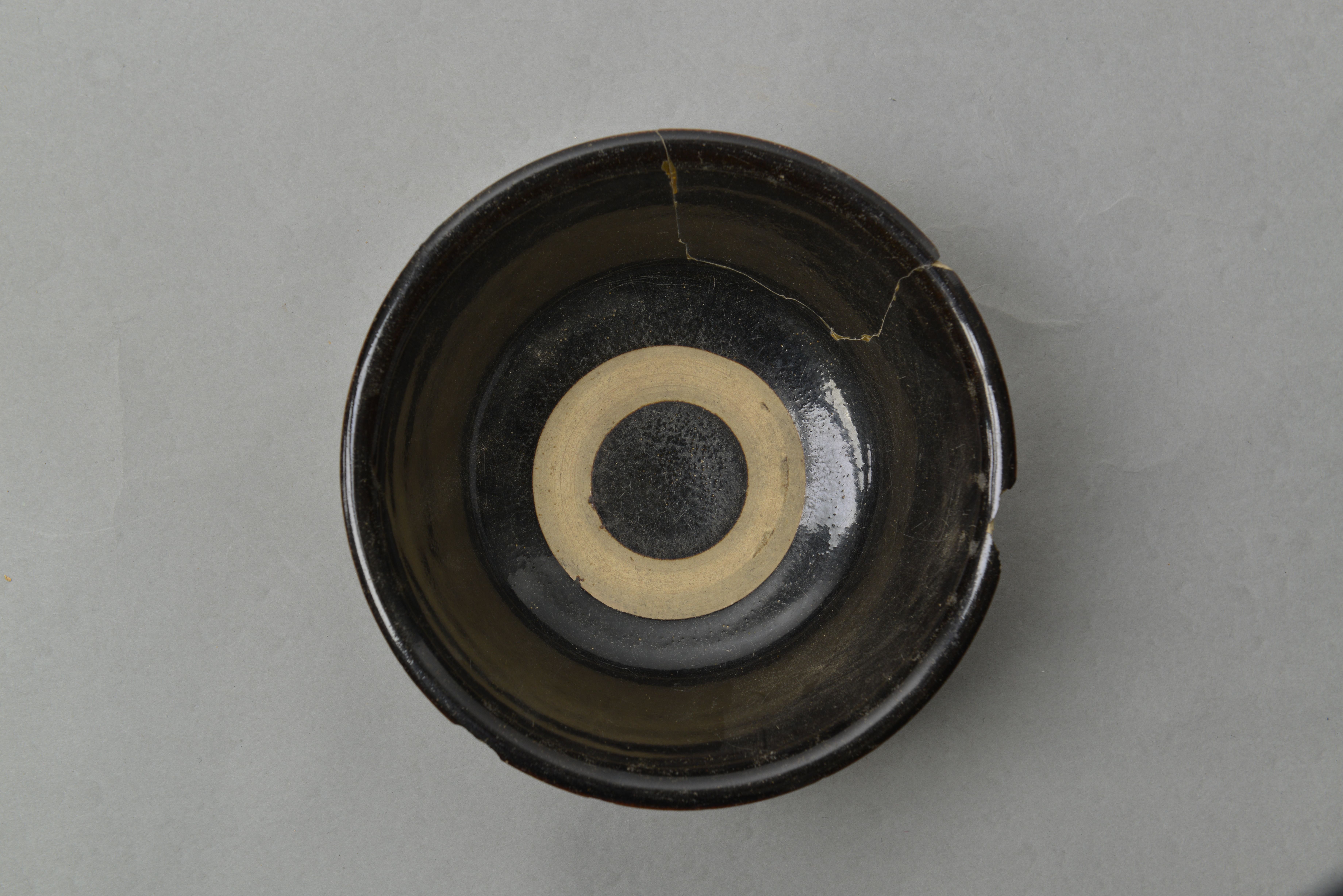明黑釉印竖绳纹碗