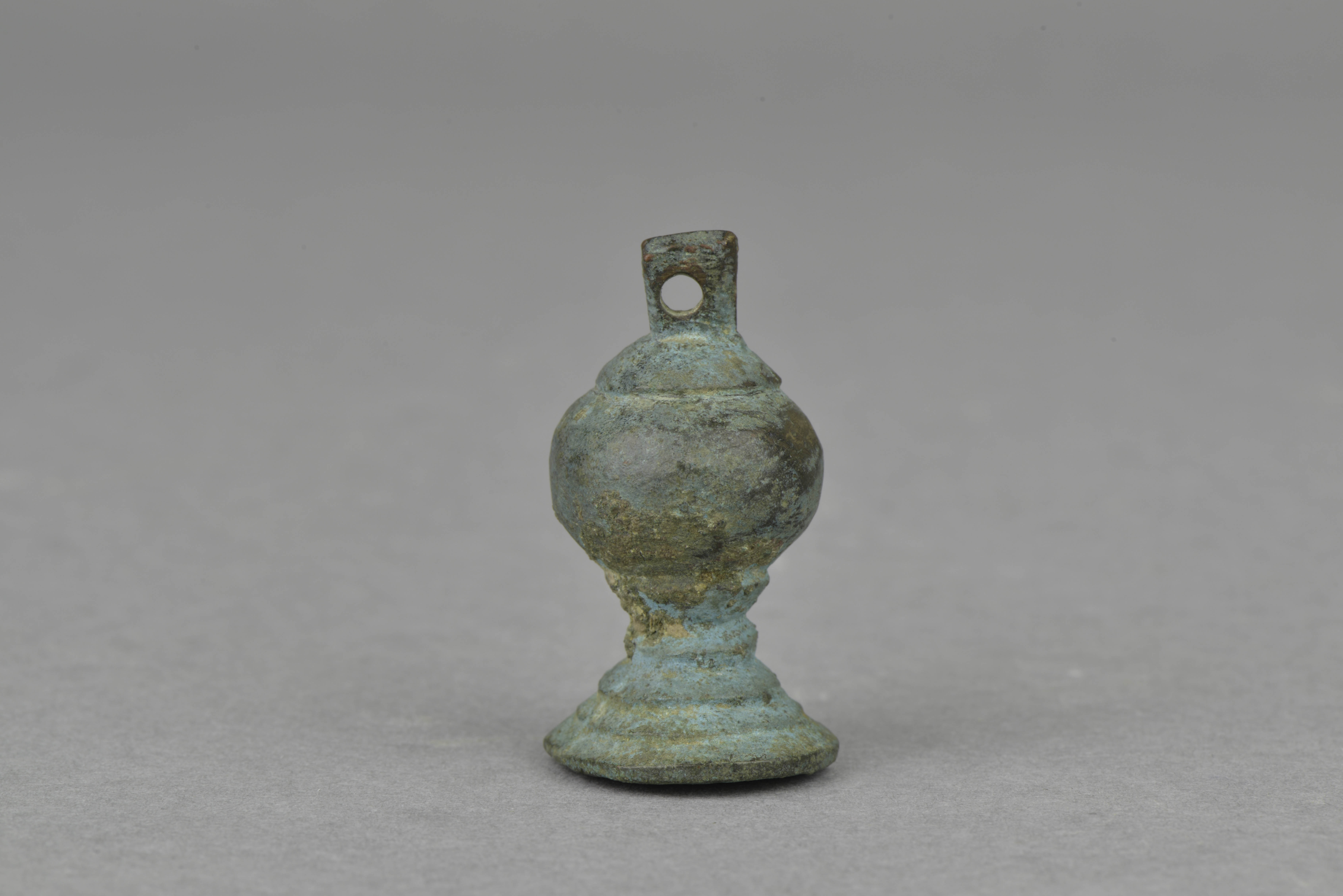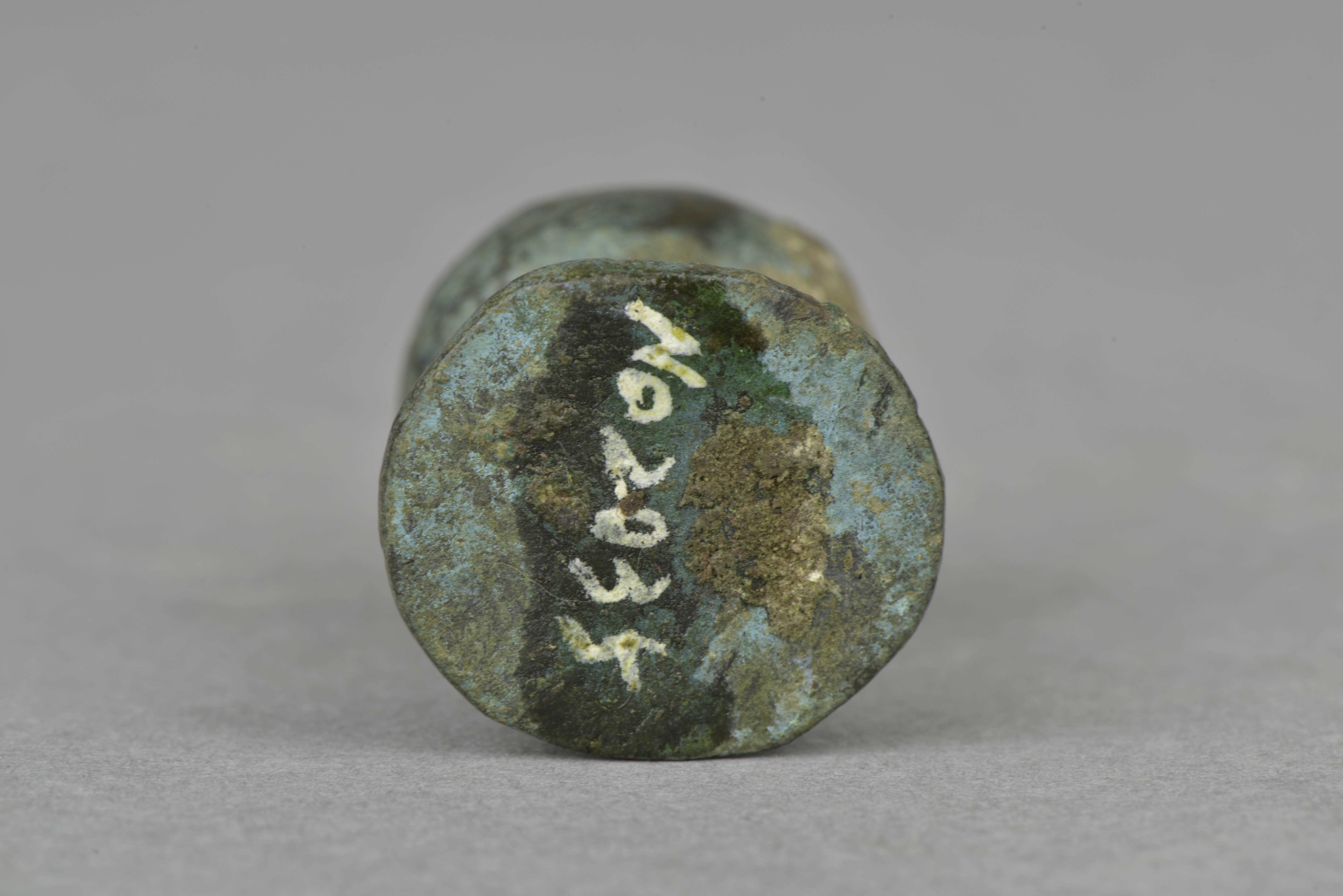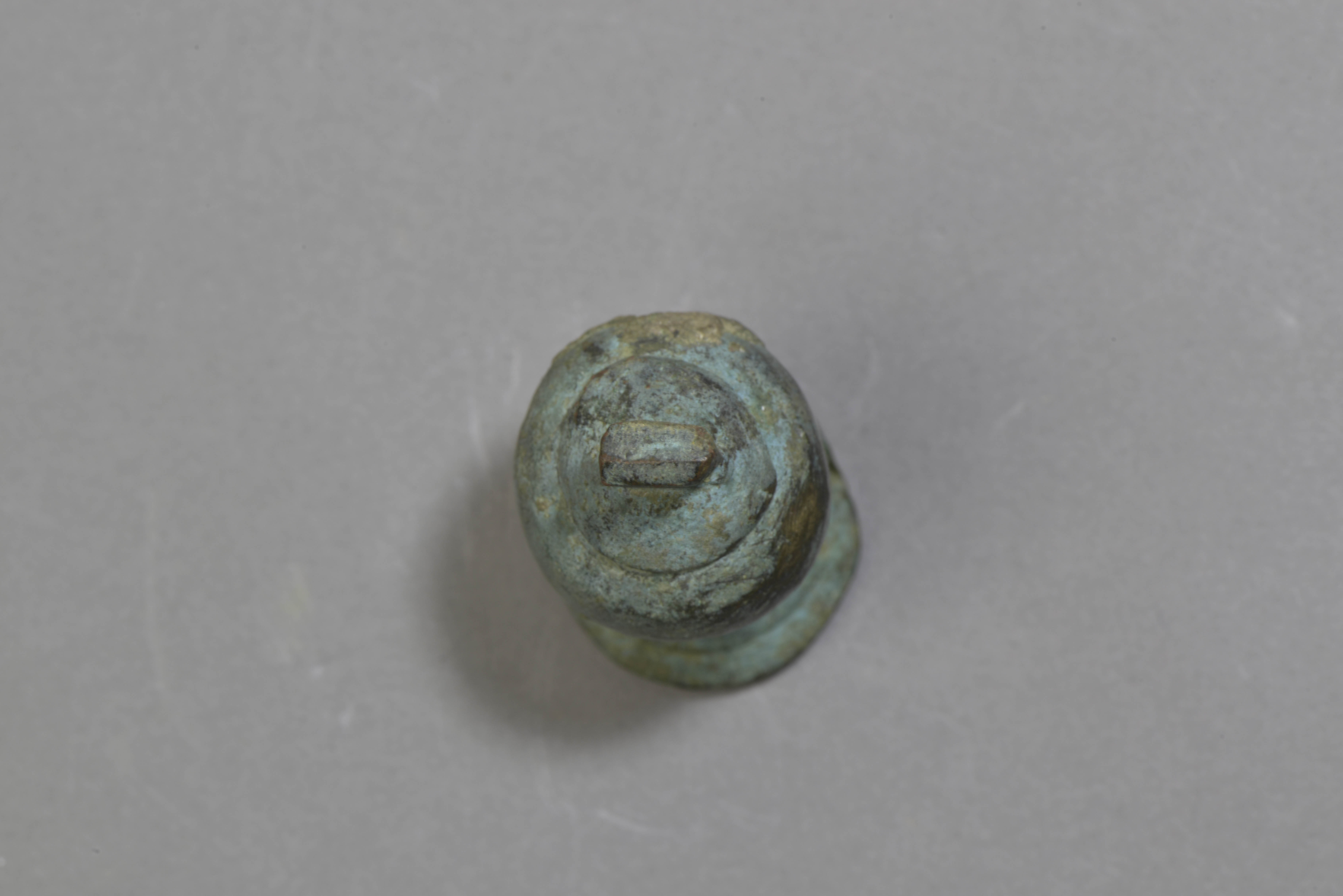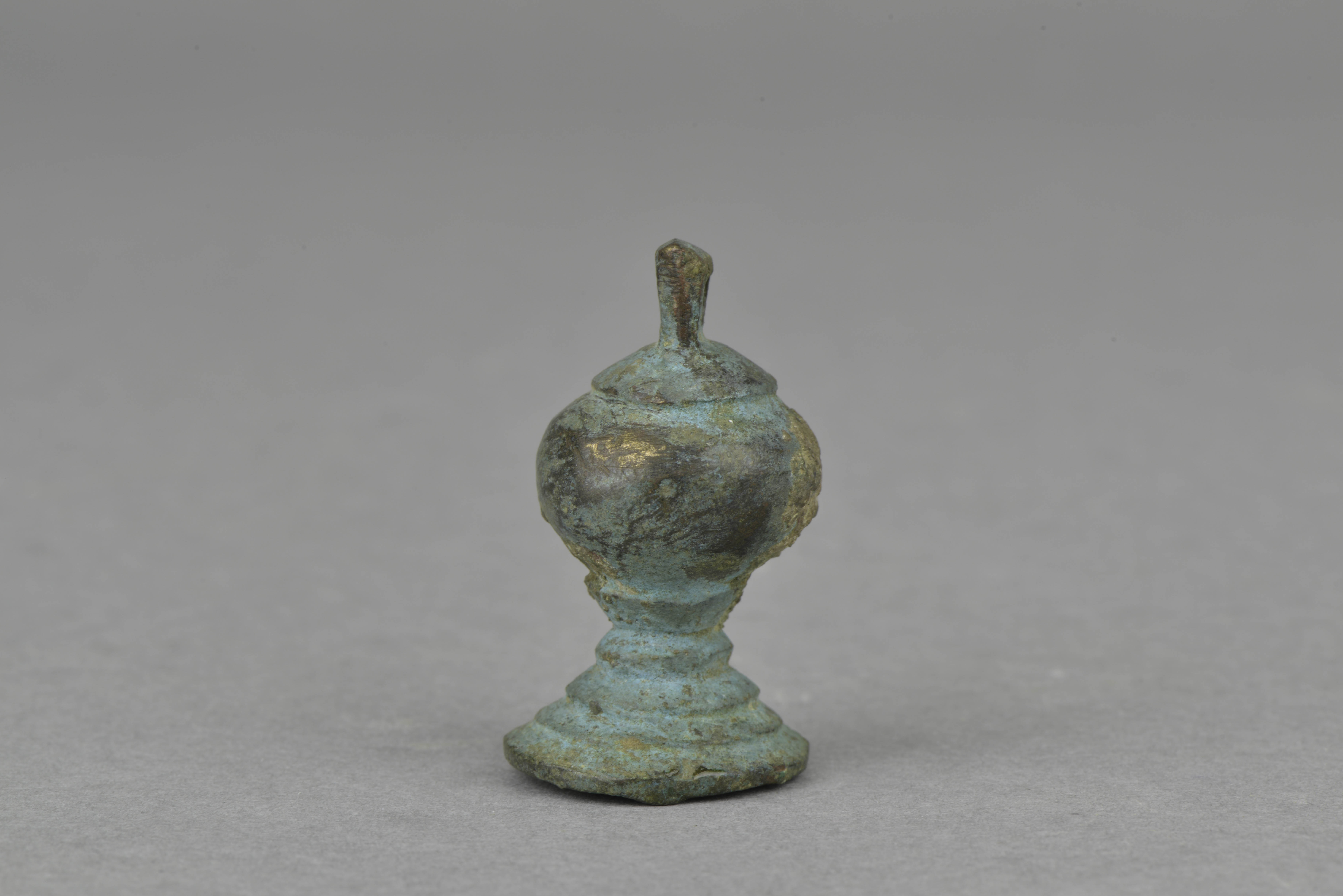 方形钮,腹下收,喇叭形底座。作上饰螺旋纹。