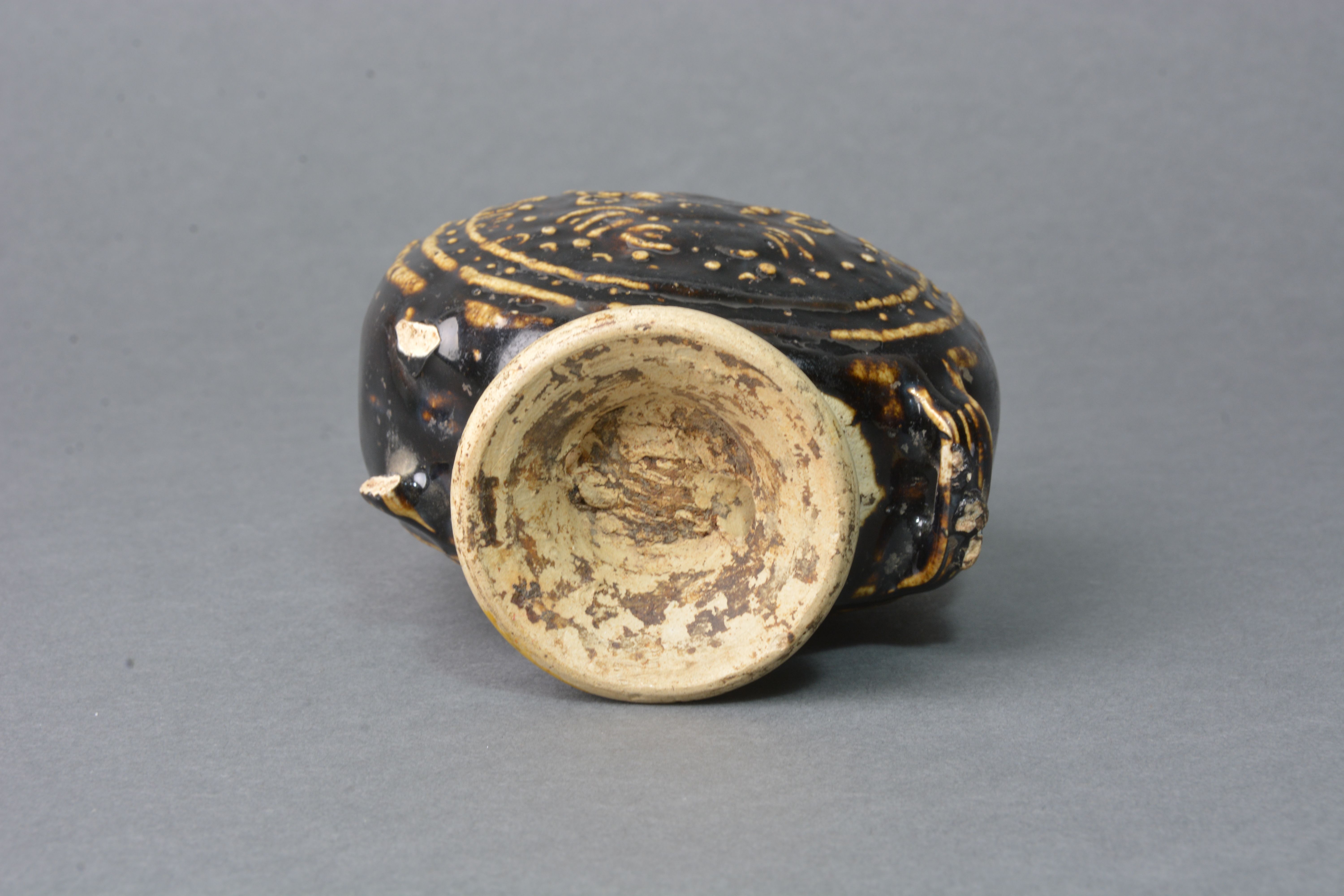 金黑釉兽面纹四系扁壶