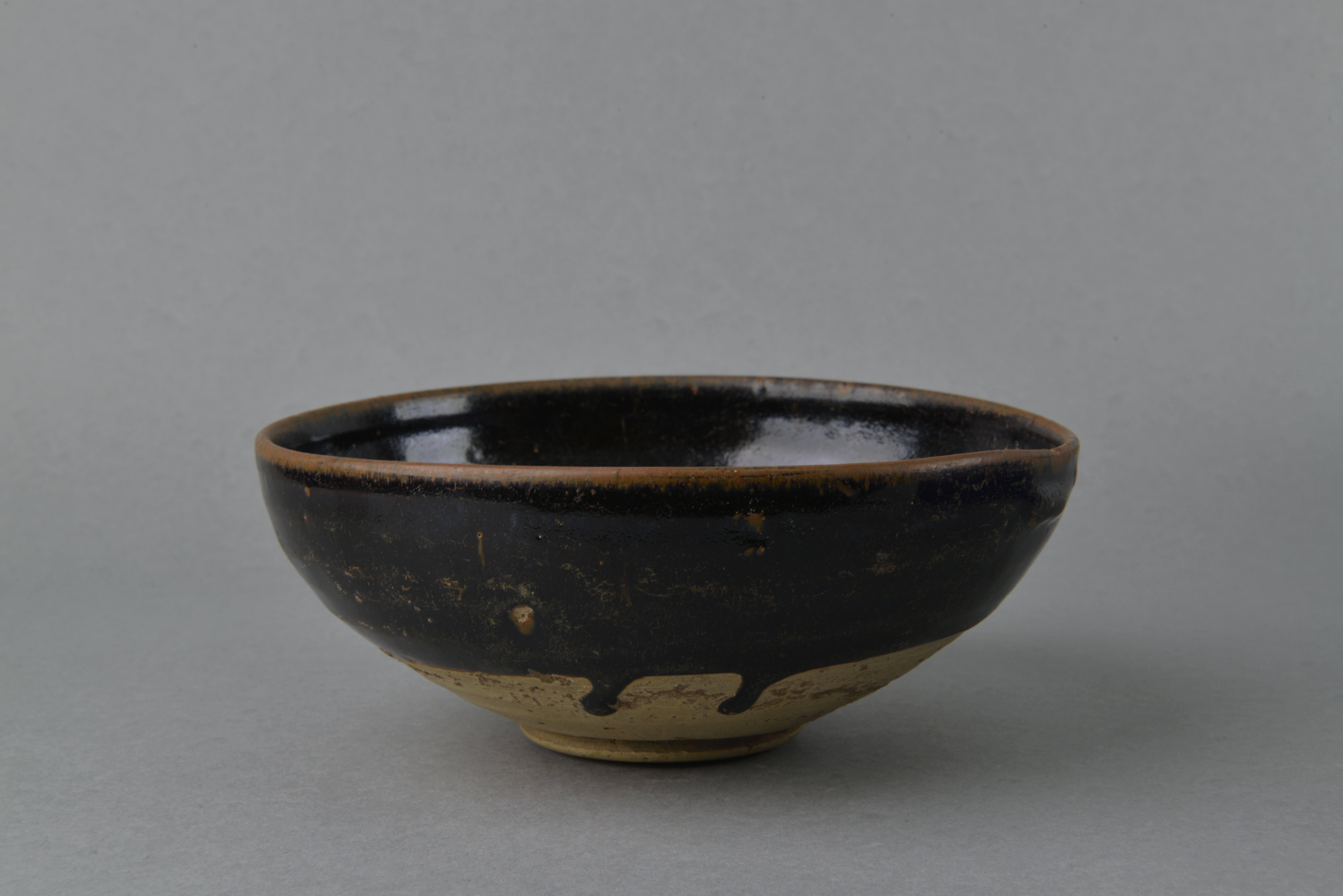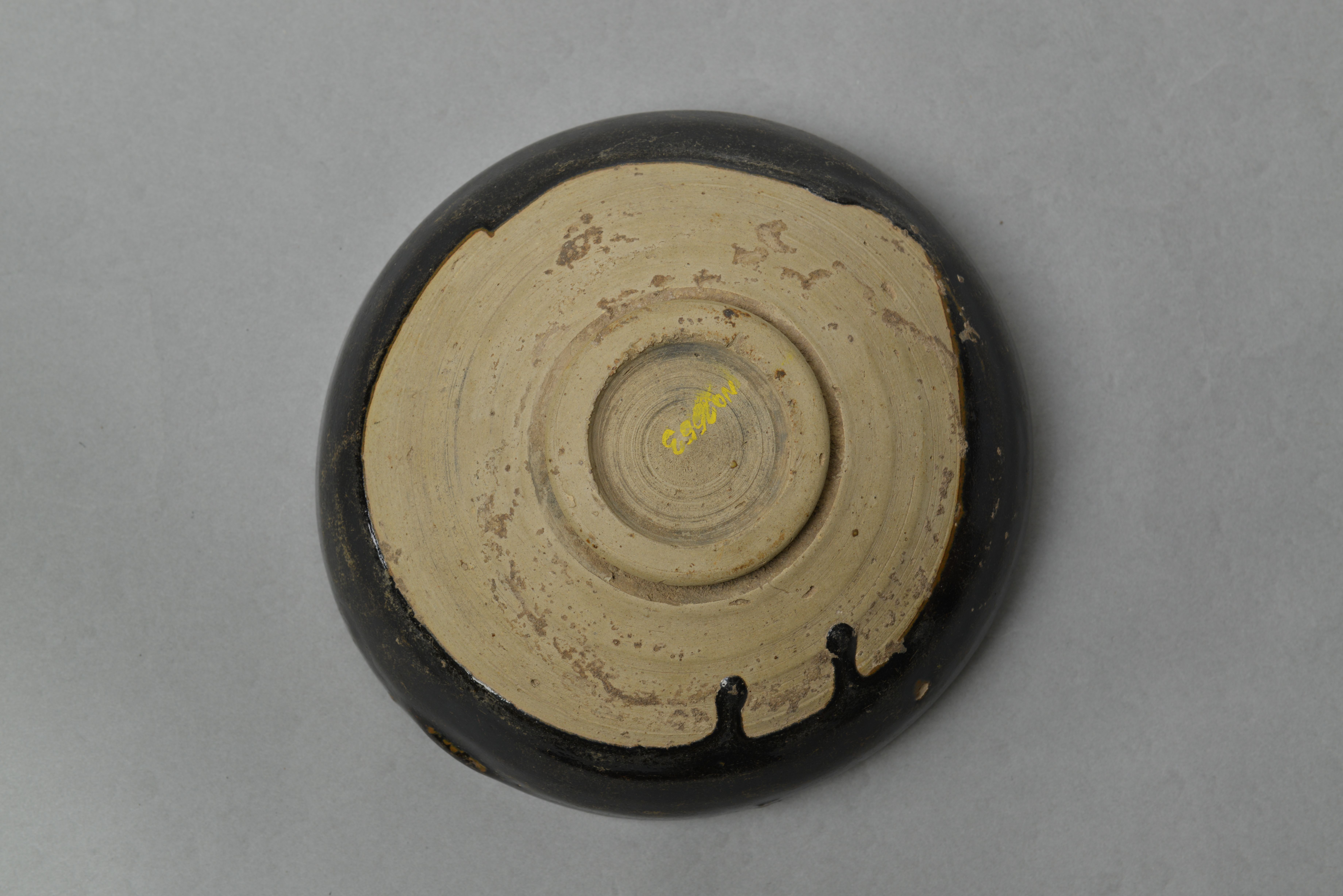 直口,弧腹,矮圈足。器内满饰黑釉,器外饰半釉。