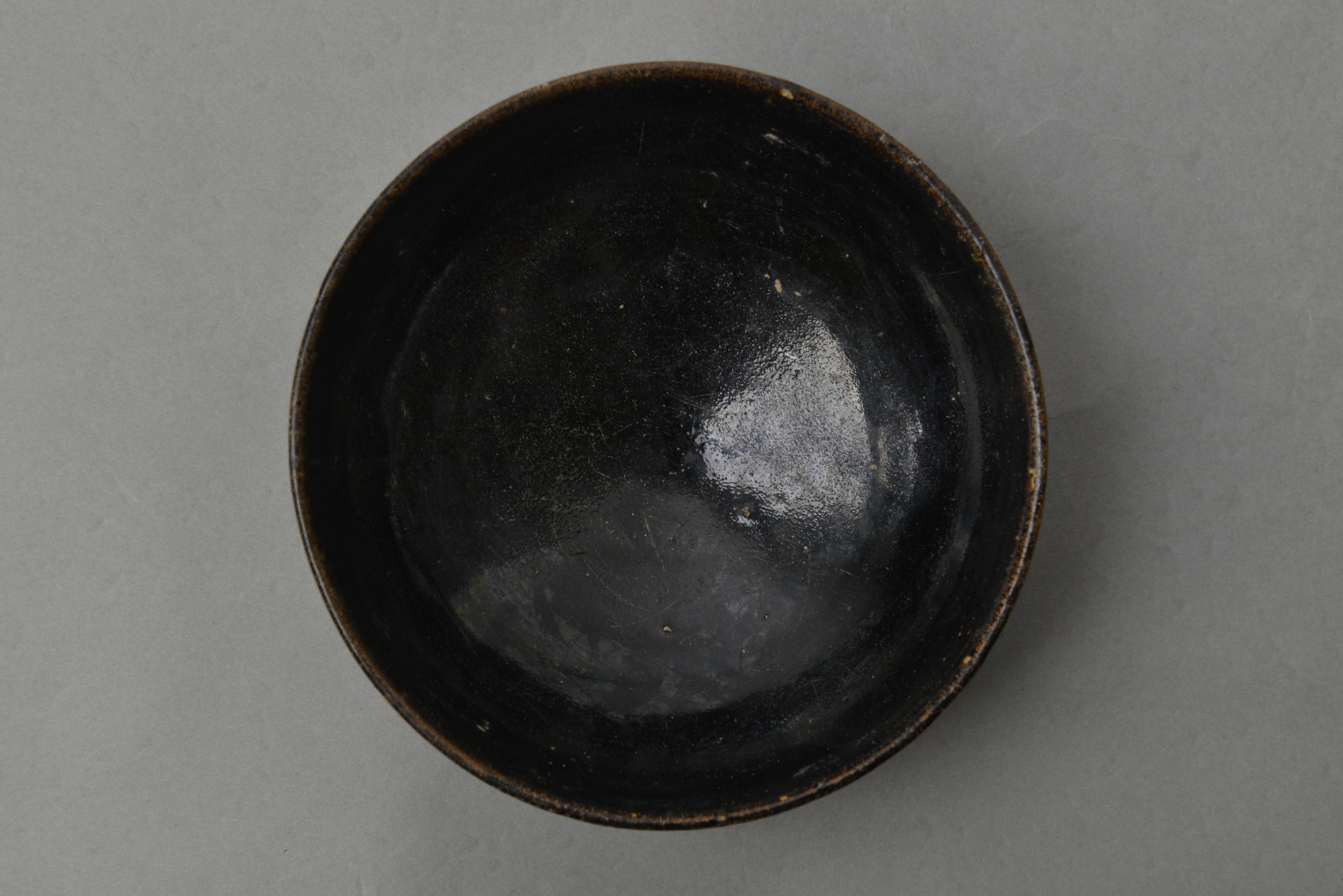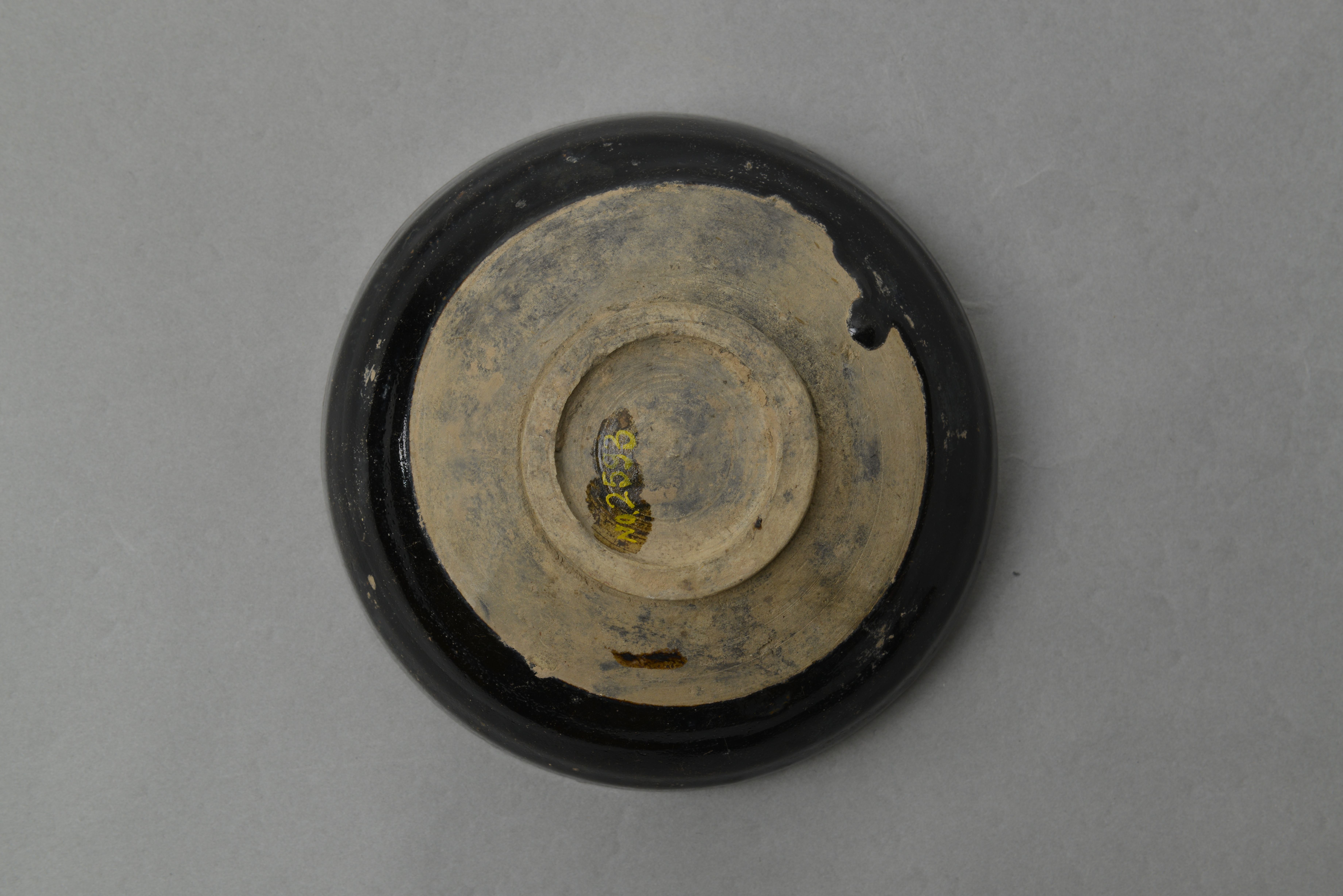 直口,弧腹,矮圈足。器内满饰黑釉,器外饰半釉。