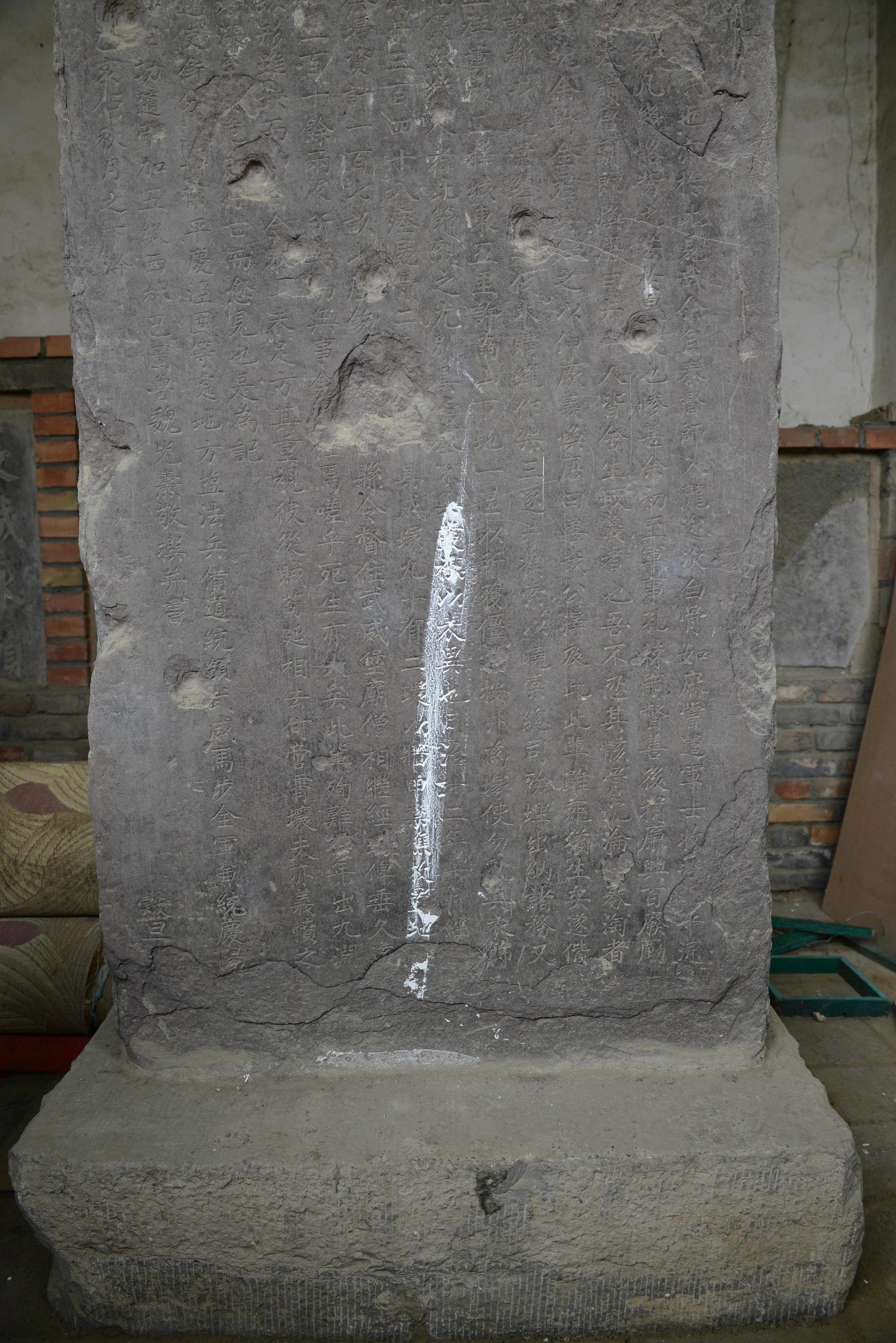 棕褐色砂质岩,分化严重,大面积剥落,首半圆形,无座,光绪乙亥,16行,素背。