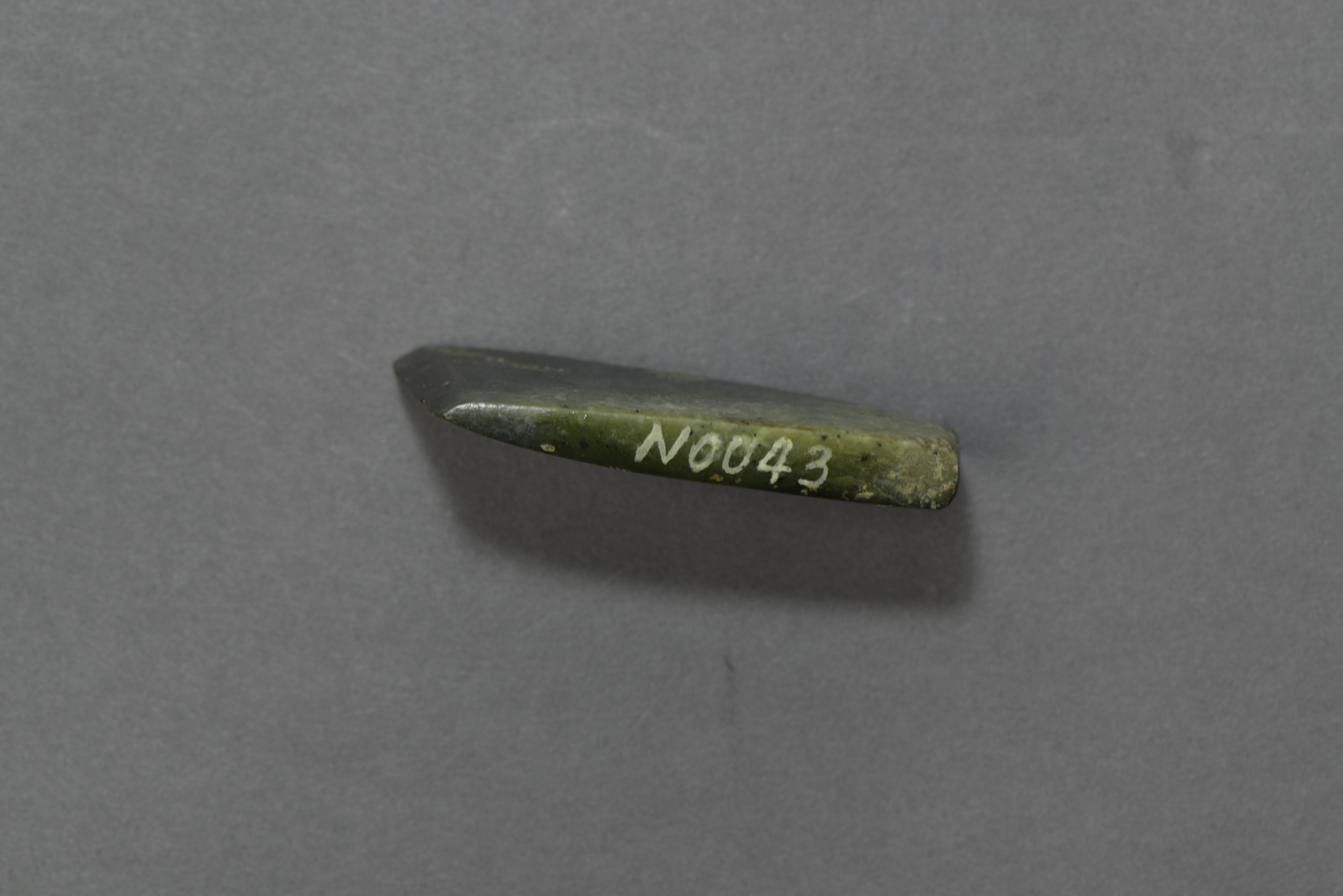 长条形,单面斜刃,通体磨光。