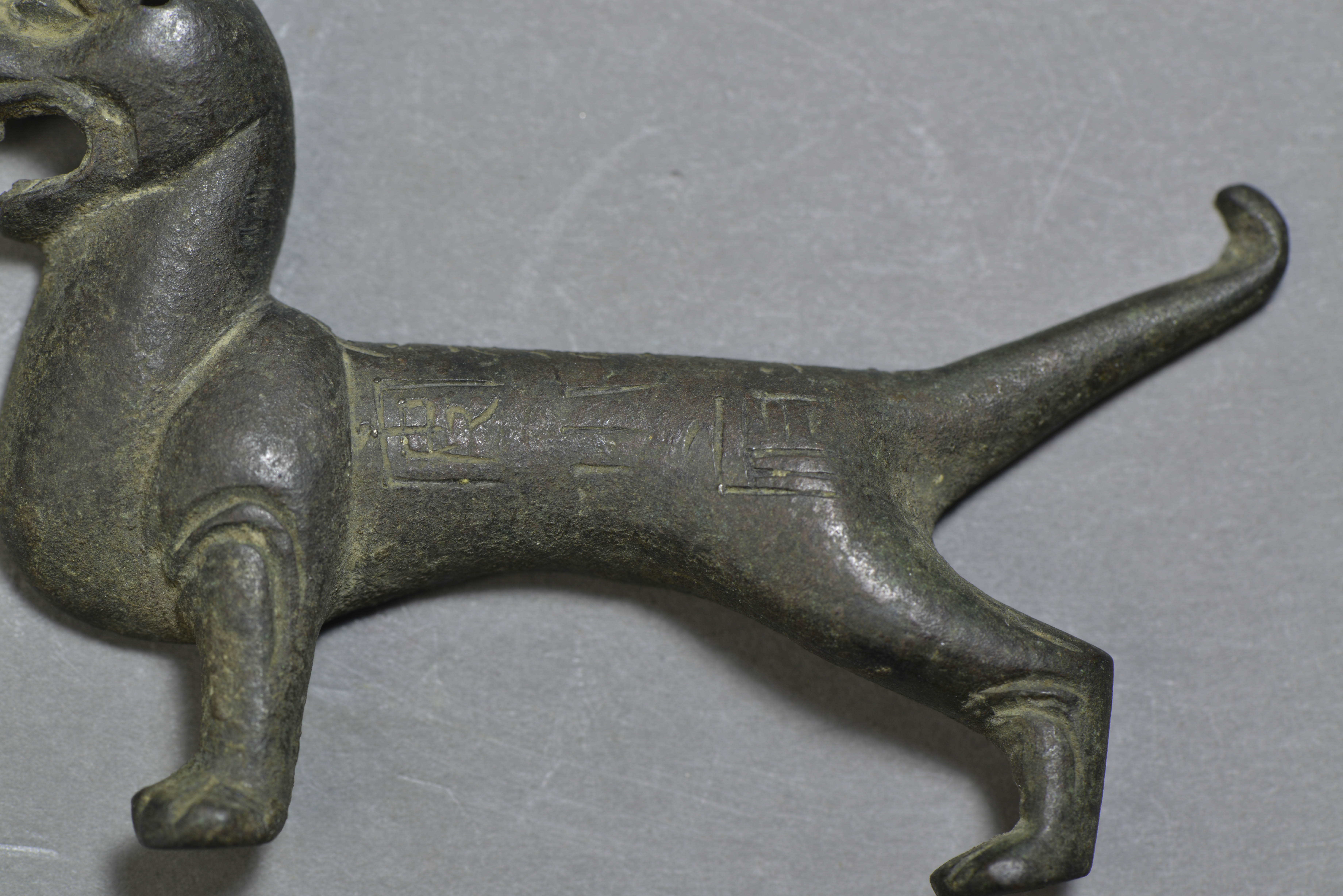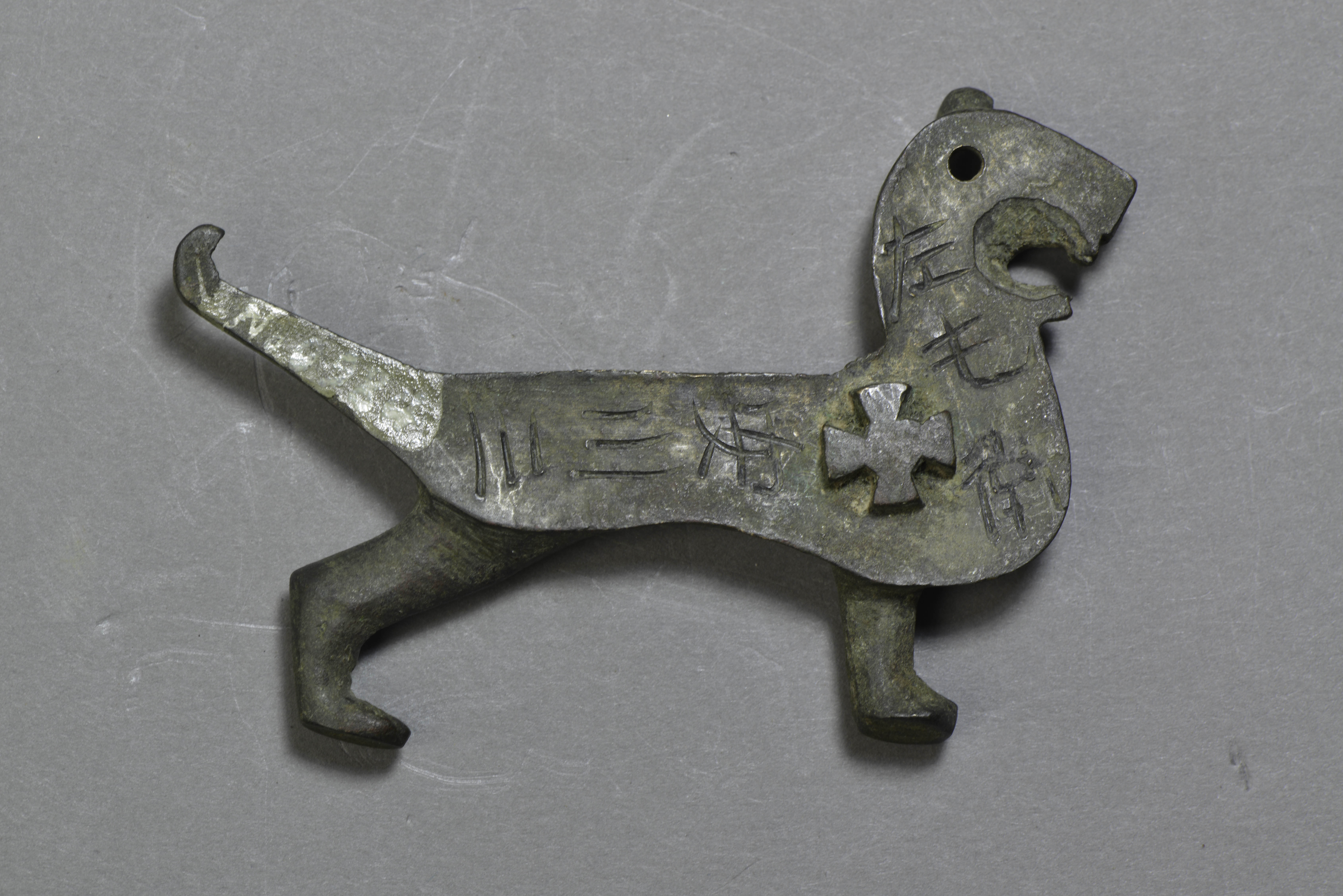 虎圆竖耳,怒目张口,挺胸昂首,尾上翘,作奔走状。符头部有圆穿孔,背面有凸起的十字扣。符身正面阴刻篆书“安川府”字样;背面阴刻楷书“左屯卫”“安川三”字样,虎背阴刻篆书“左屯卫铜虎符三”字样,字为左半部。
