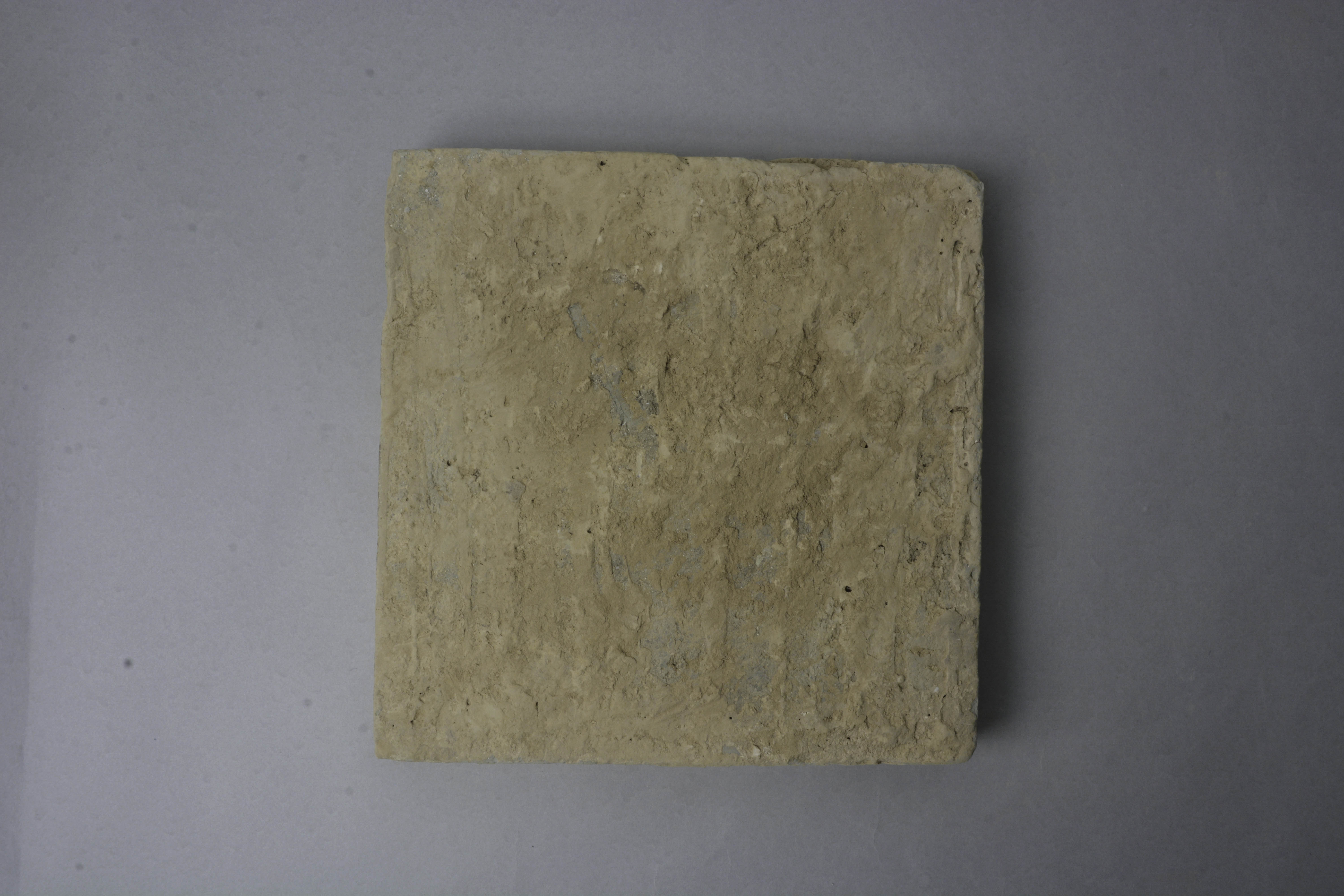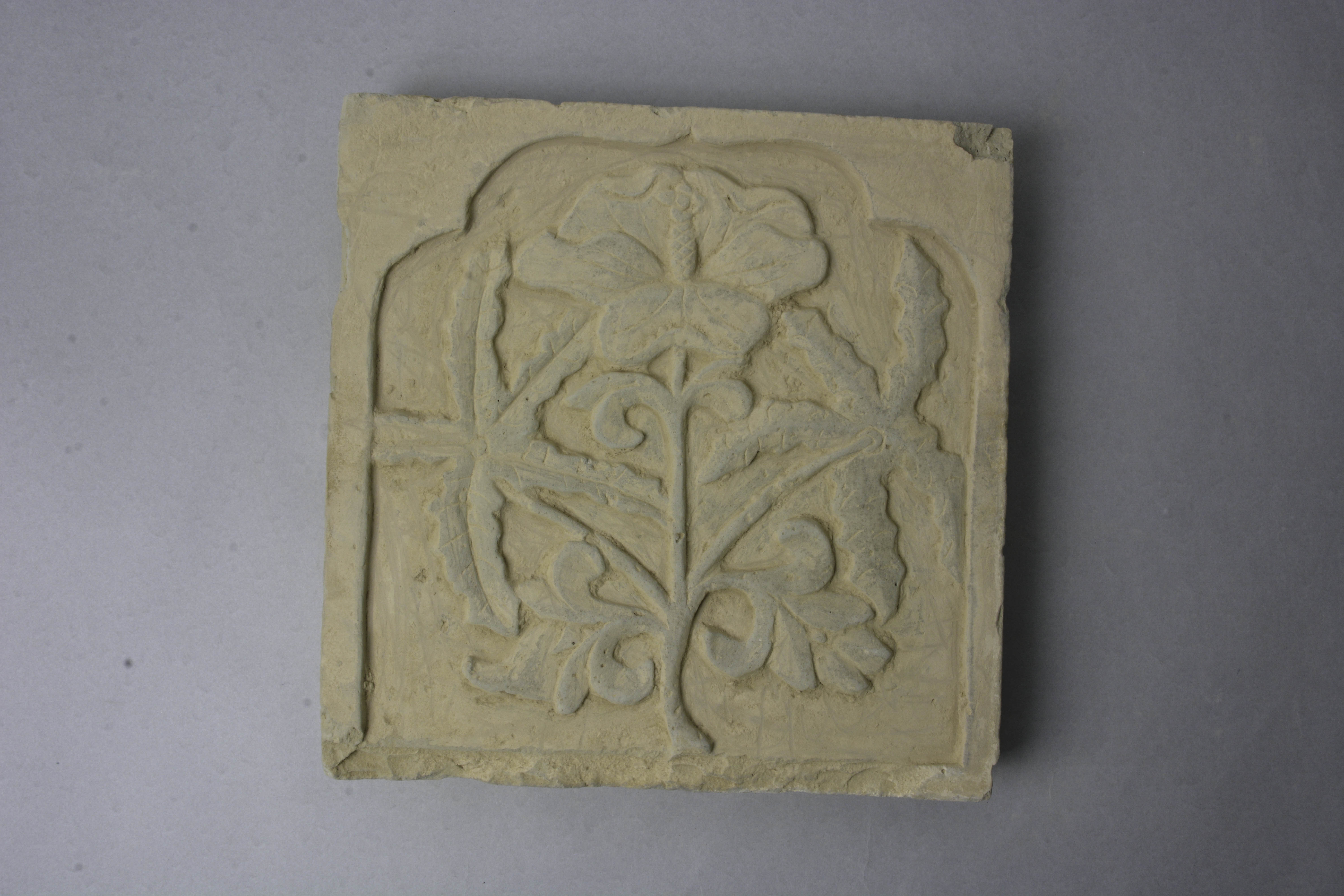 泥质陶。方形,正面开云头方窗,内浮雕一株莲花,背面平素。
