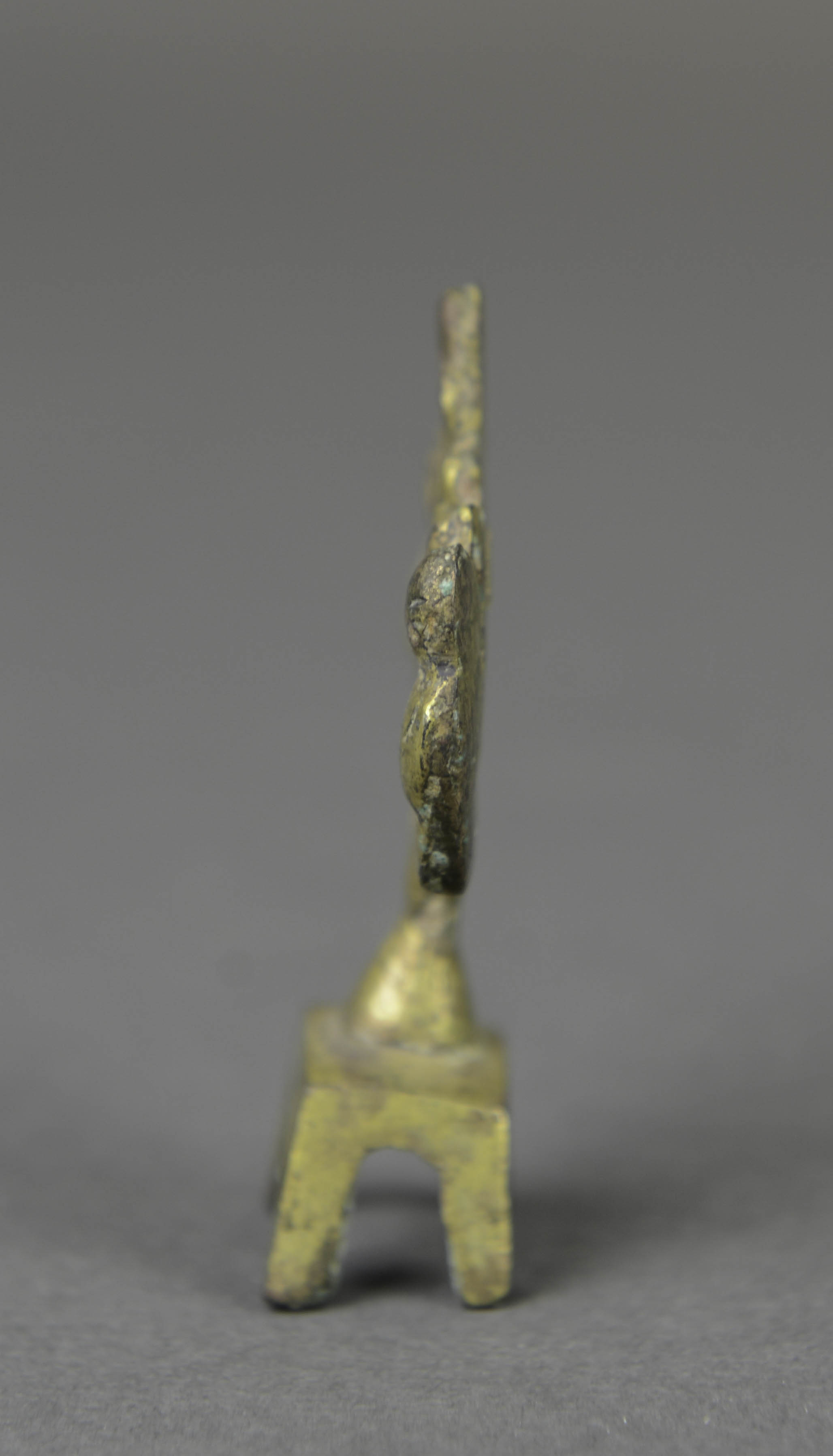 一莲枝梗上有七朵莲花,每朵莲花上有一结跏趺坐小化佛。化佛排列有致,正中一佛脑后为椭圆形头光,枝梗下接四足方床,鎏金。