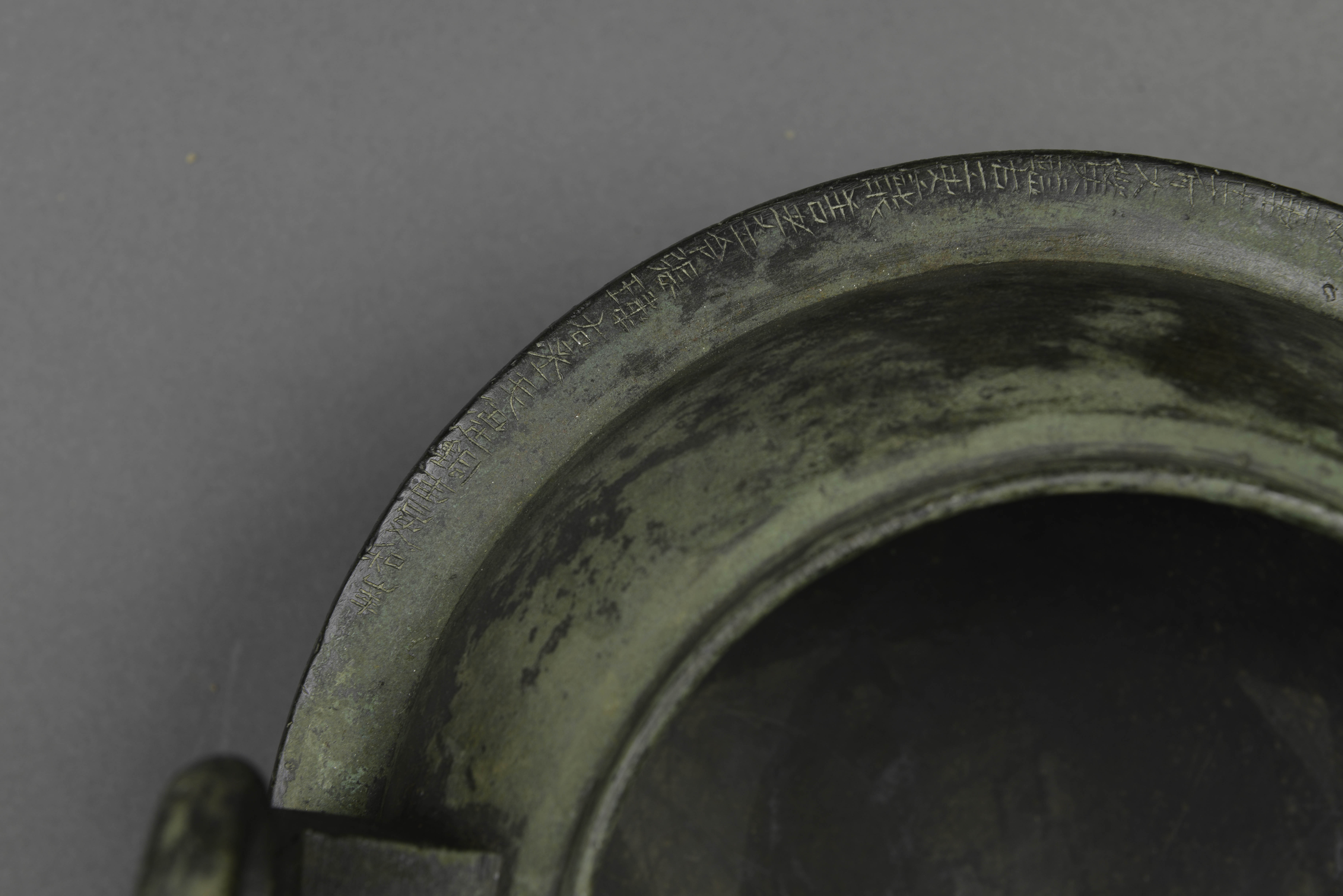 - 内容:子母口,两耳近口沿,平出口折成环状,扁球形腹,腹中部出宽板沿一周,上阴刻隶书“建宁元年八月丁酉诏书作鼎一枚重十二斤太僕临右工史庞善考工令张玮右丞毛迁铜曹史和□”四十字铭文,圜底近平,三蹄足外撇。