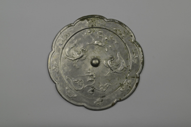 唐菱花形双兽双鸾鸟花枝纹铜镜